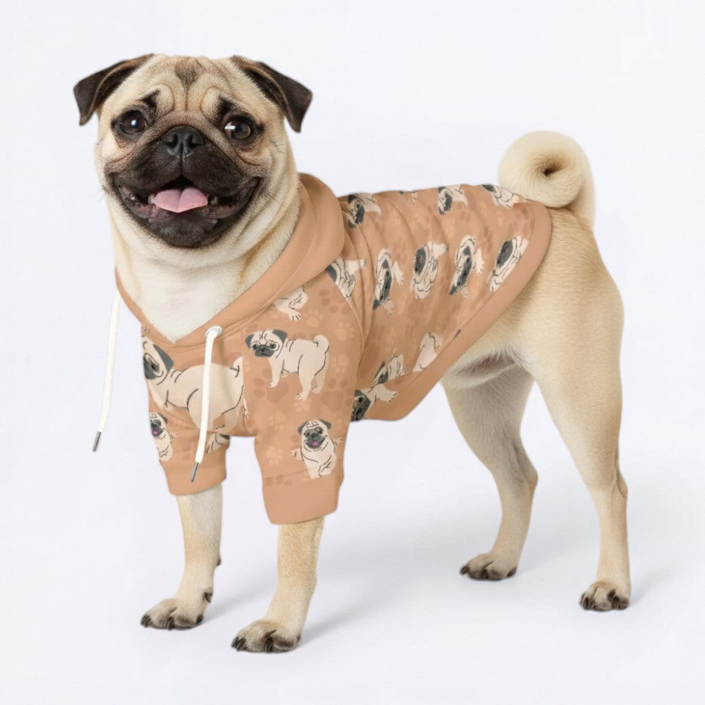 Keep your pug cozy and trend-setting with this premium pug hoodie, crafted from 100% natural cotton for ultimate comfort. Designed specifically to accommodate the sturdy, broad-chested build of pugs, this breathable dog sweatshirt serves as the perfect layer for chilly walks or stylish indoor lounging.