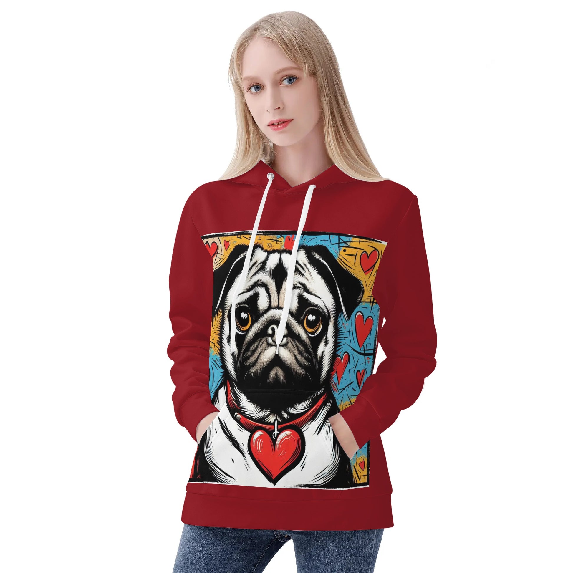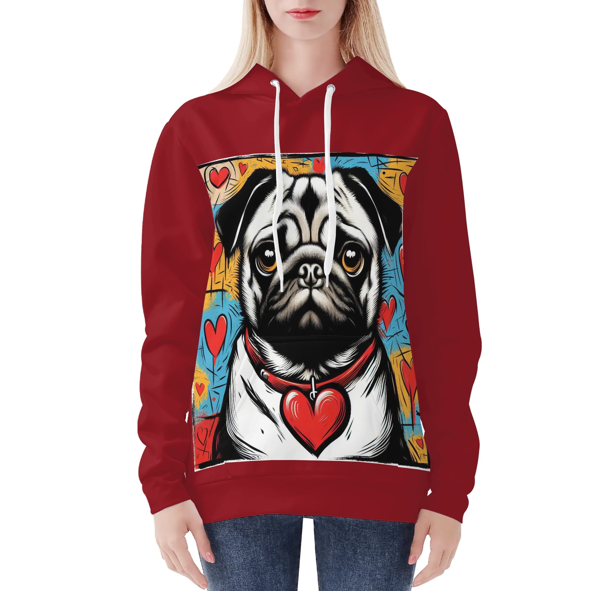 - Care Instructions: To keep your Pug Love Hoodie in pristine condition, we recommend hand washing or machine washing in cold water. Please avoid bleaching, tumble dry on low, and there’s no need to iron or dry clean.