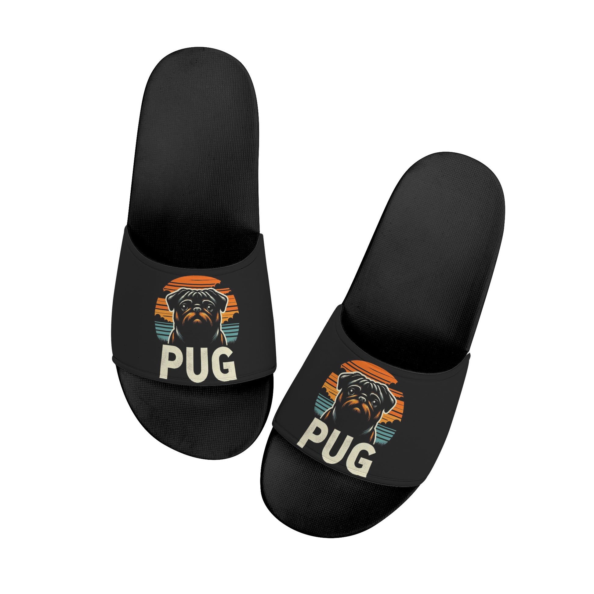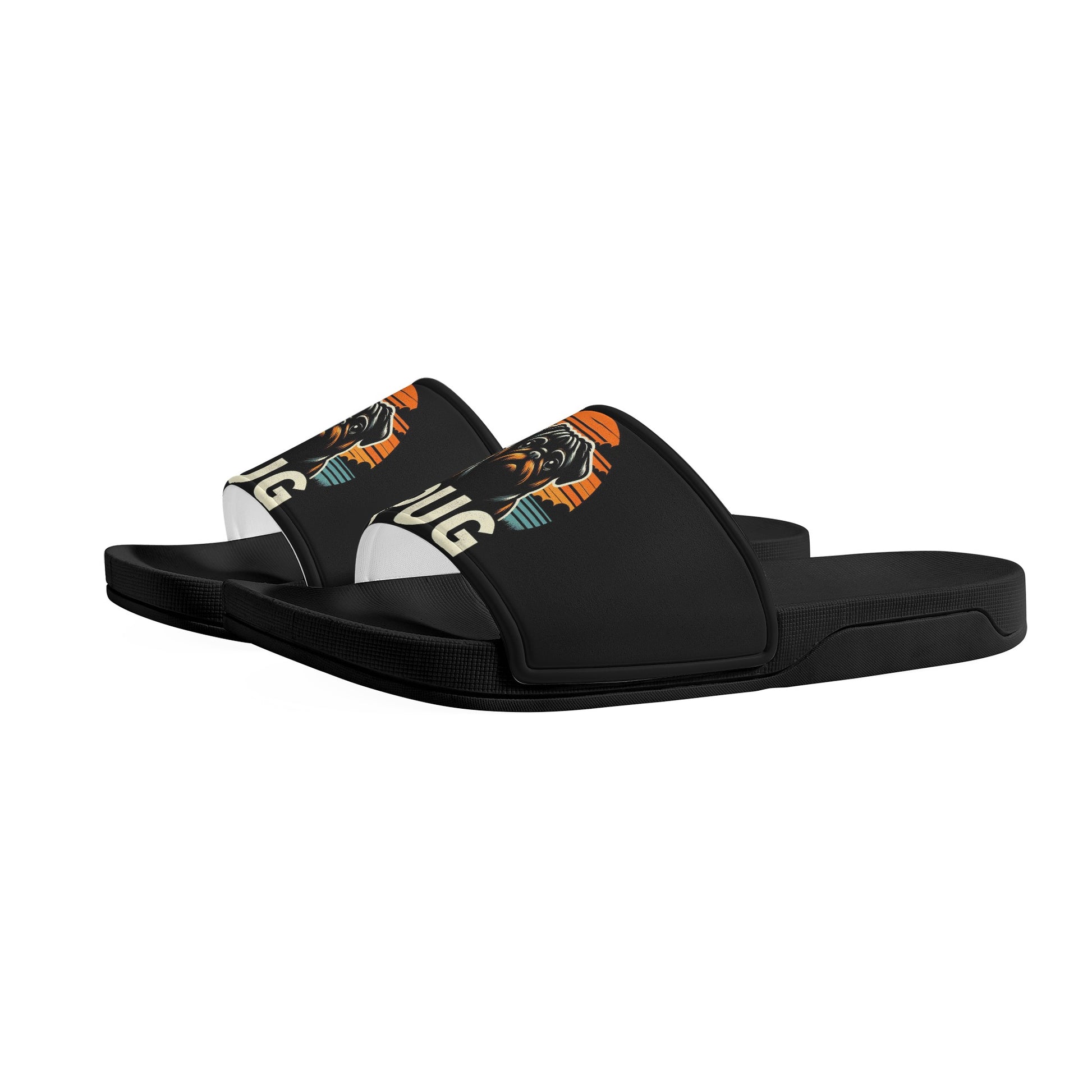 Unleash your love for pugs with our custom printed slide sandals, featuring an open toe and flat heel style for ultimate comfort. Here's what makes them special: