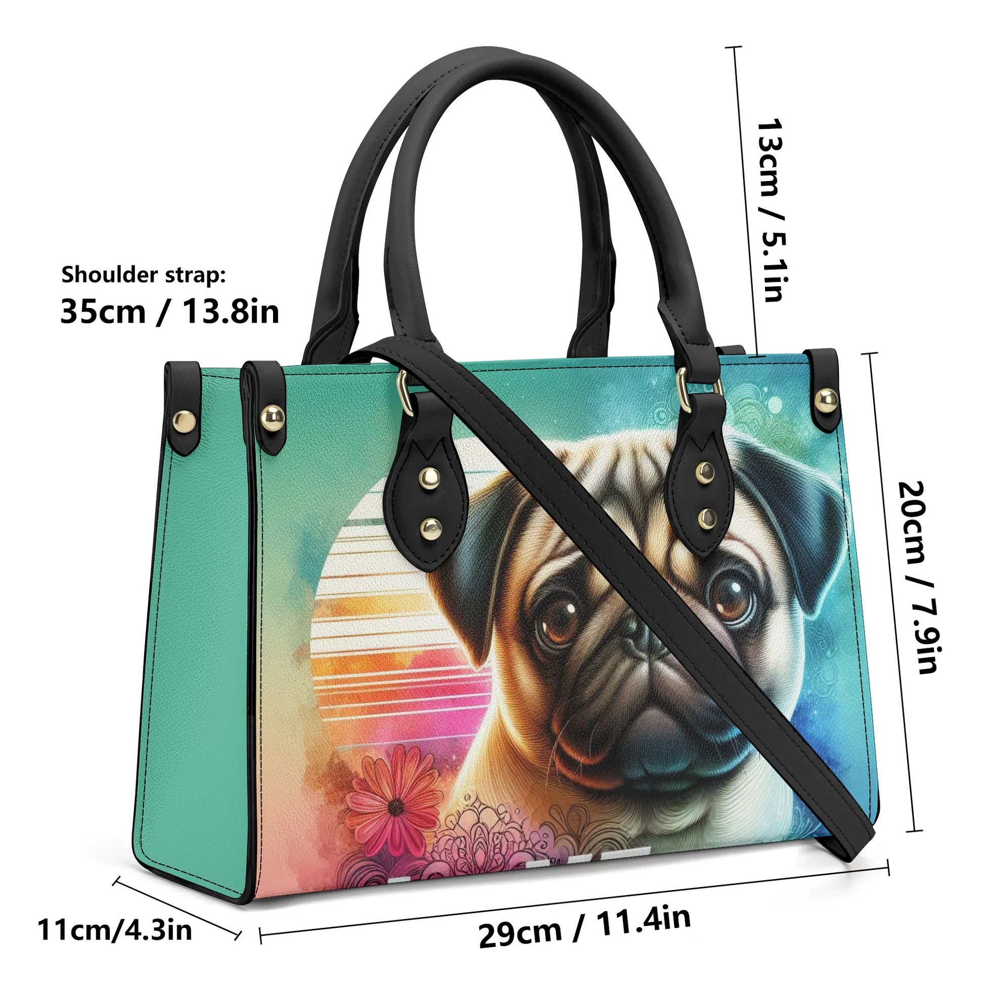 Convenient Shoulder Strap: A sewn-in, non-removable shoulder strap offers versatility and ease, allowing you to carry your love for pugs wherever you go.
