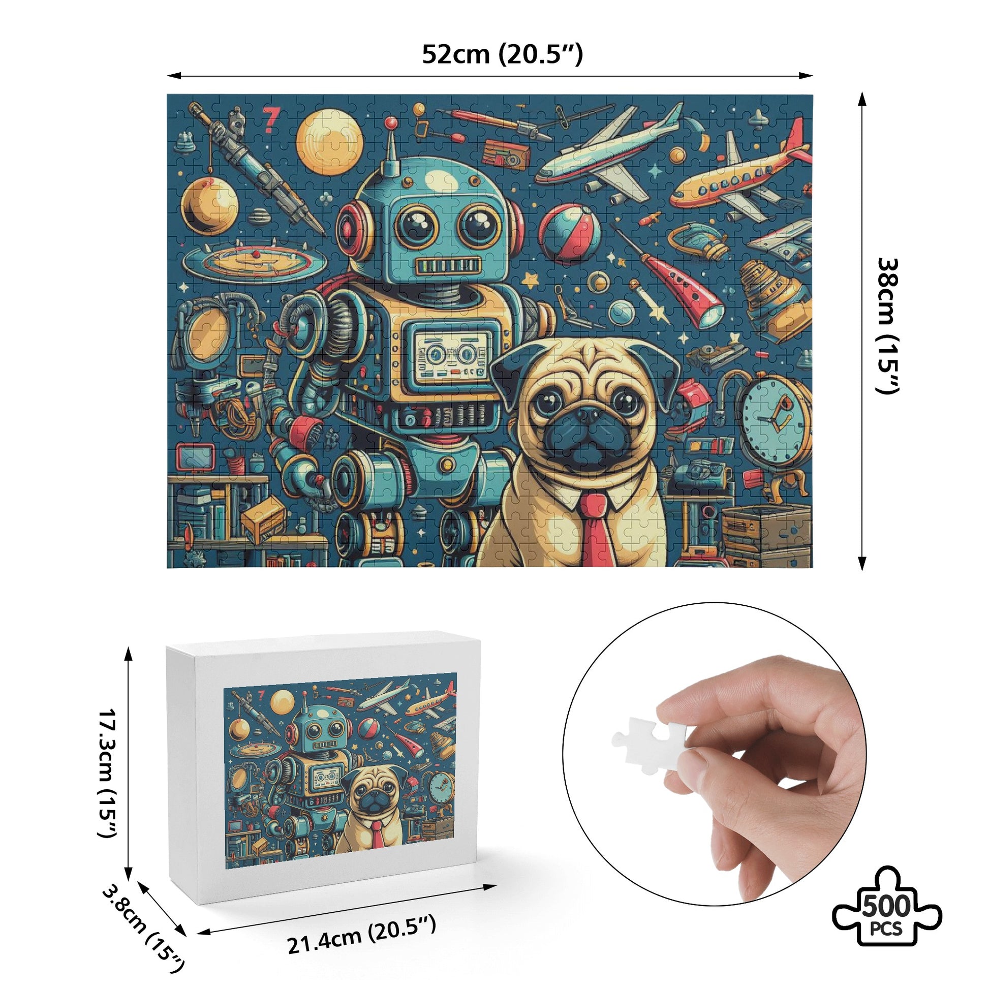 Style & Design: Our pug dog puzzle features customized bright color designs that are vibrant and long-lasting, ensuring that your puzzle looks as good as new even after many playthroughs.