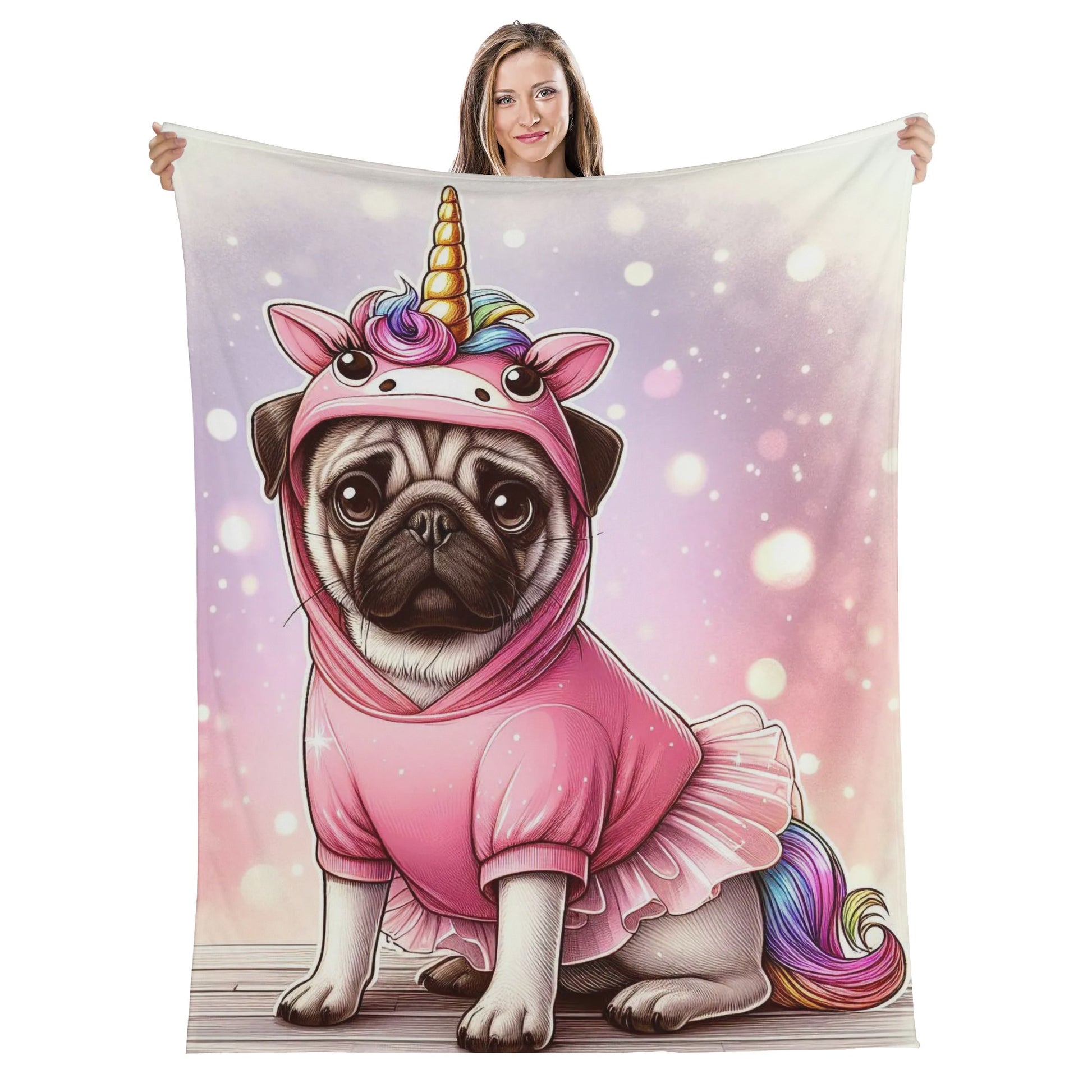 Embrace the cuddle-worthy comfort and pug-centric design that makes our blanket a must-have for every pug enthusiast. It’s not just a blanket; it’s a hug from your favorite pug! 🐾