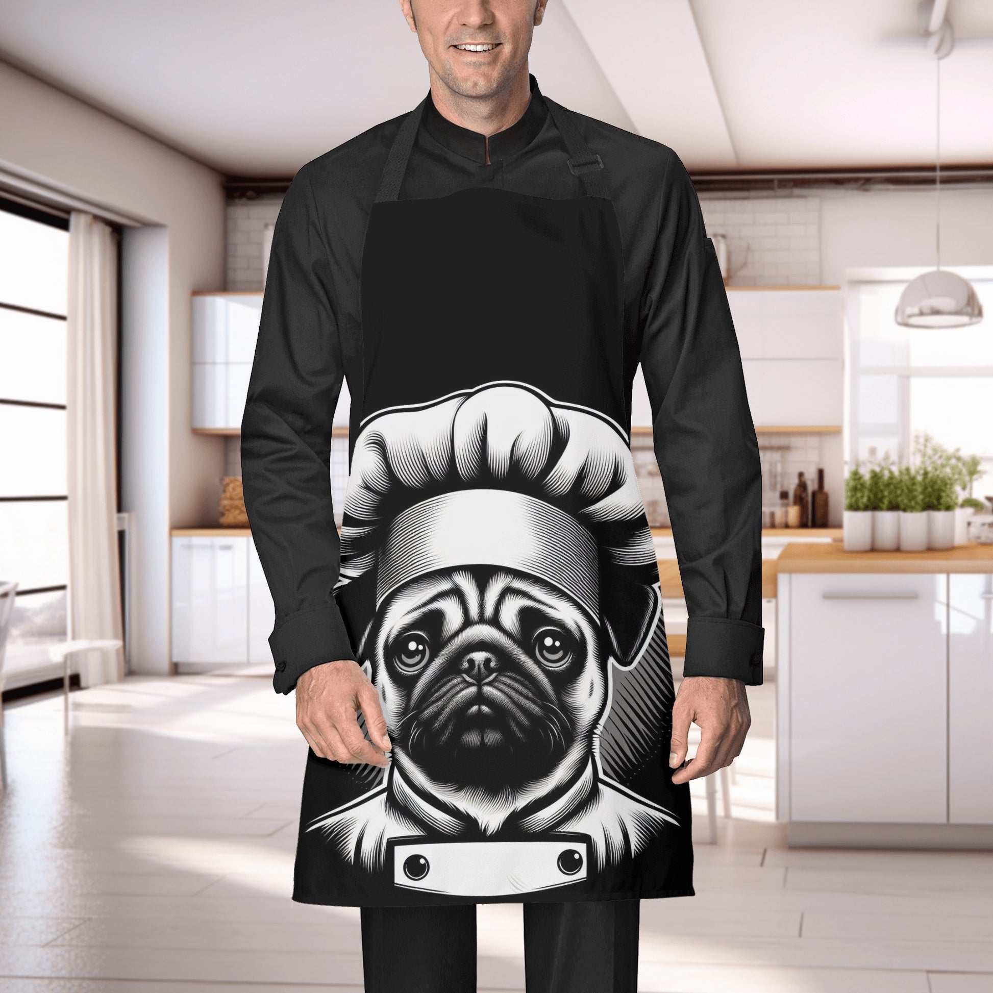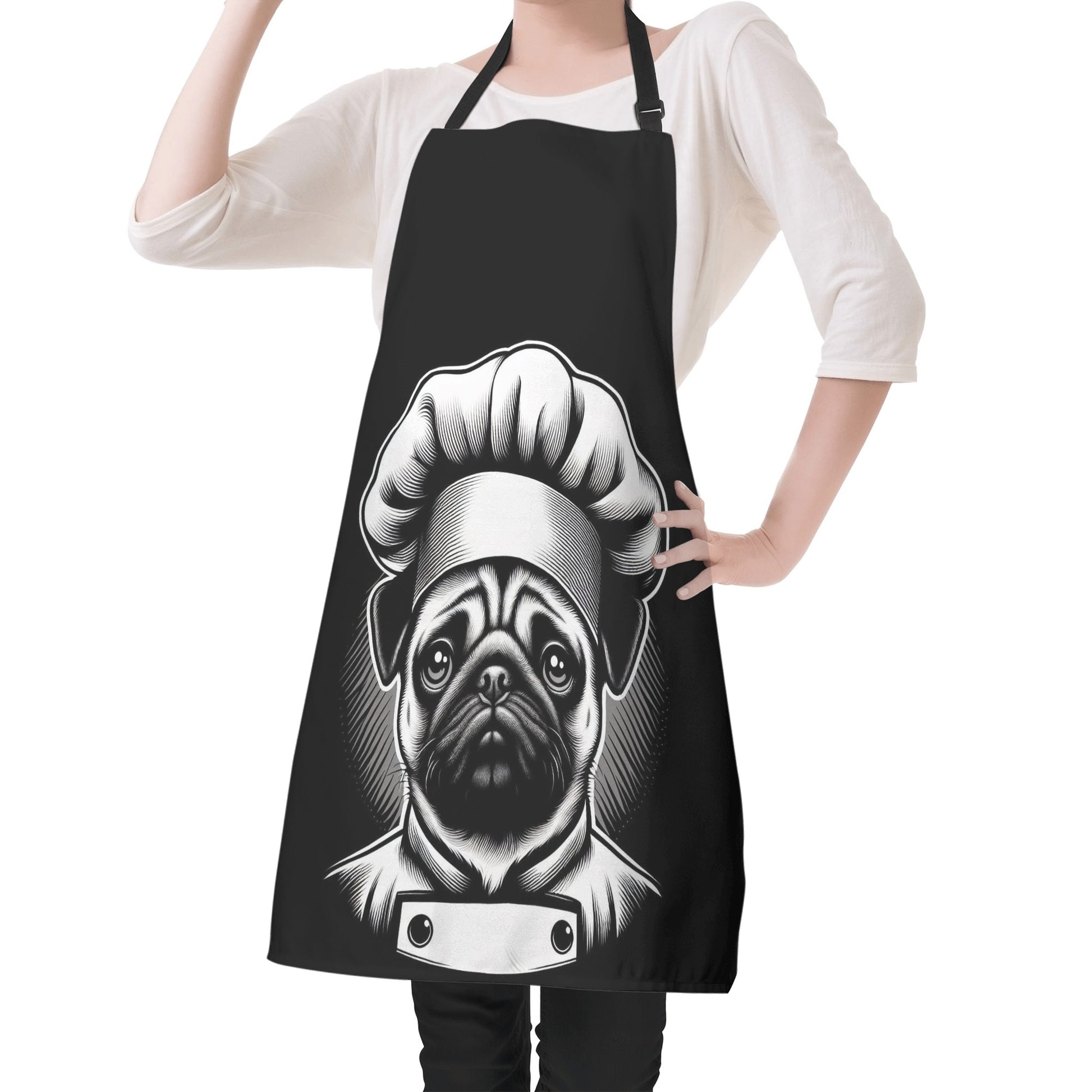Are you a pug lover who enjoys cooking or painting? Then you will love this apron featuring a cute pug design. This apron is made of high-quality polyester fabric that is durable and easy to clean. It has an adjustable neck strap and long waist straps to fit your body comfortably. Whether you are in the kitchen or in the studio, this apron will protect your clothes from spills and stains. Plus, it will show off your love for pugs in a fun and stylish way. To care for this apron, simply hand wash or machine wash and dry. Order yours today and get ready to unleash your creativity with your pug apron. 🐶