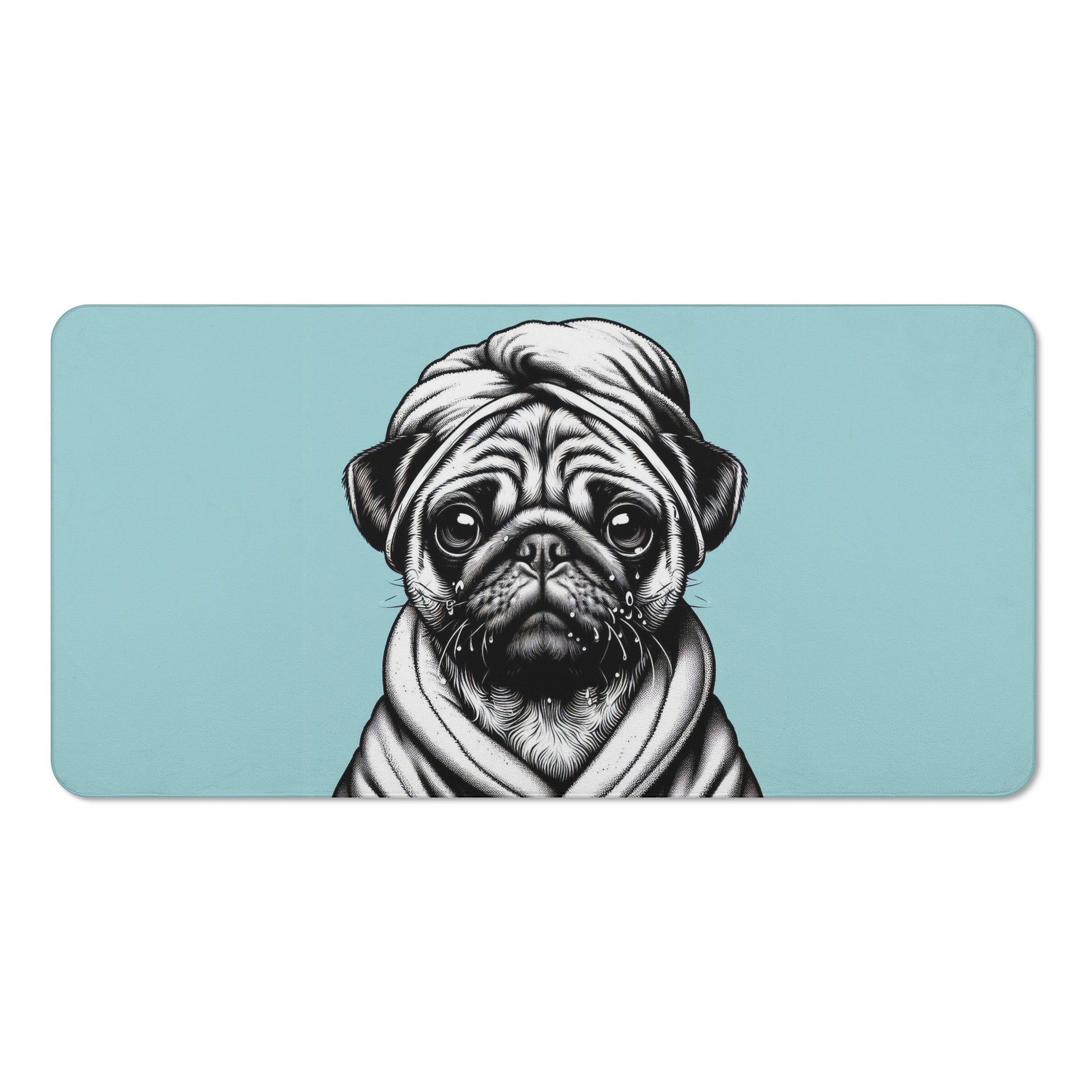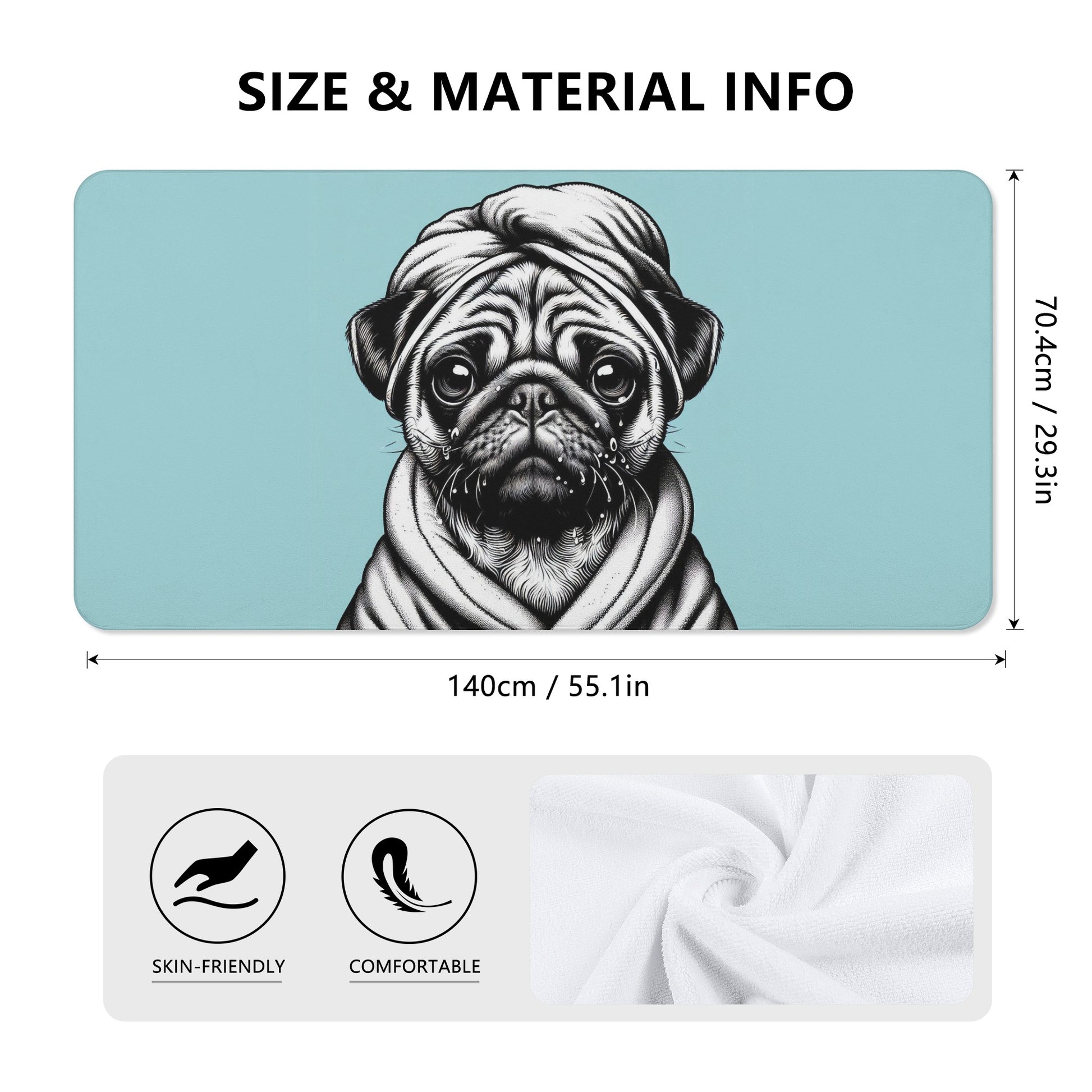 Do you love pugs and unicorns? Then this bath towel is perfect for you! This towel features a cute and colorful scene of a pug dog with a unicorn in a bathtub, surrounded by hearts and bubbles. It will brighten up your bathroom and make your bathing time more fun and relaxing.