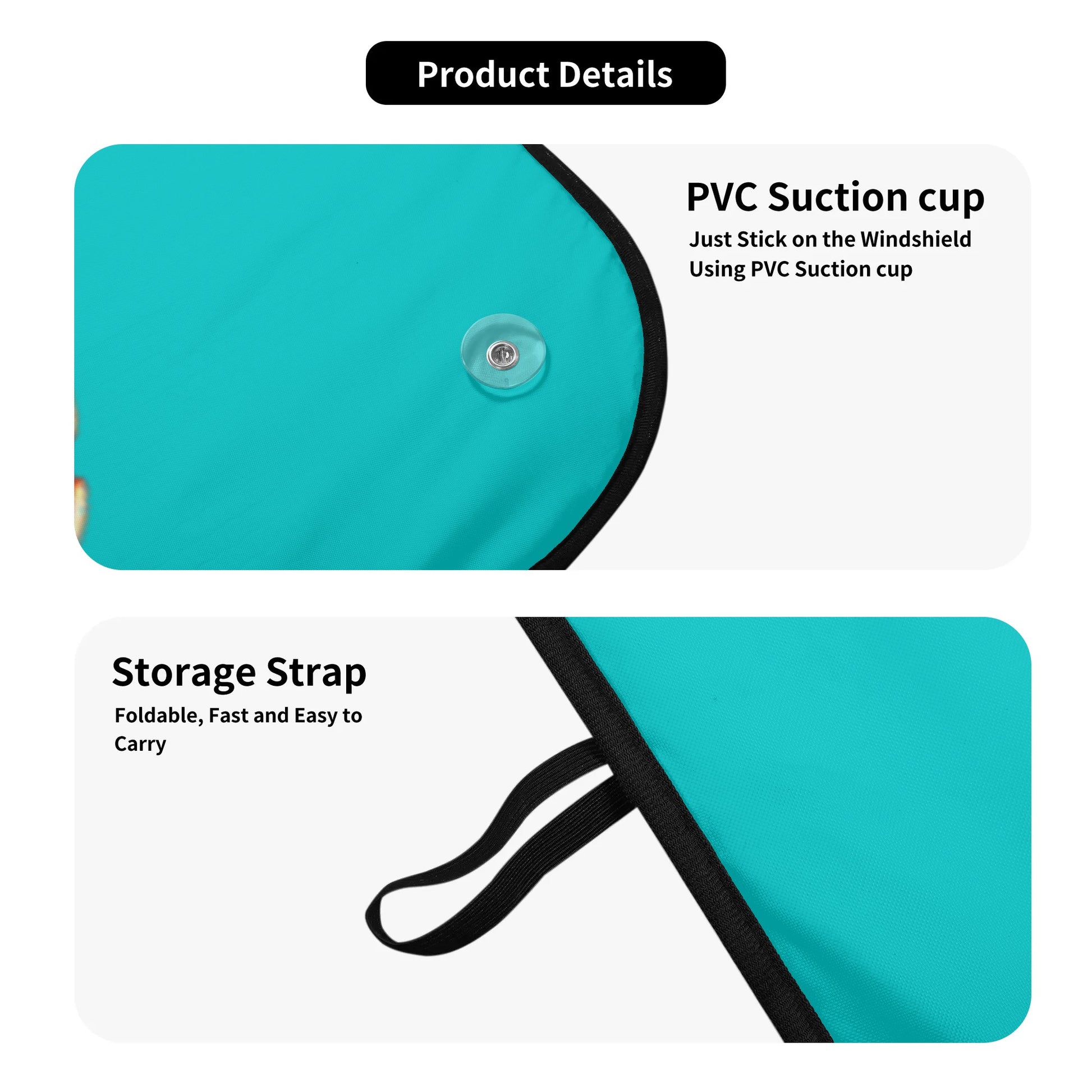 - Installation: Equipped with durable PVC suction cups, the sunshade attaches firmly to your windshield, making it simple to set up or remove as needed.