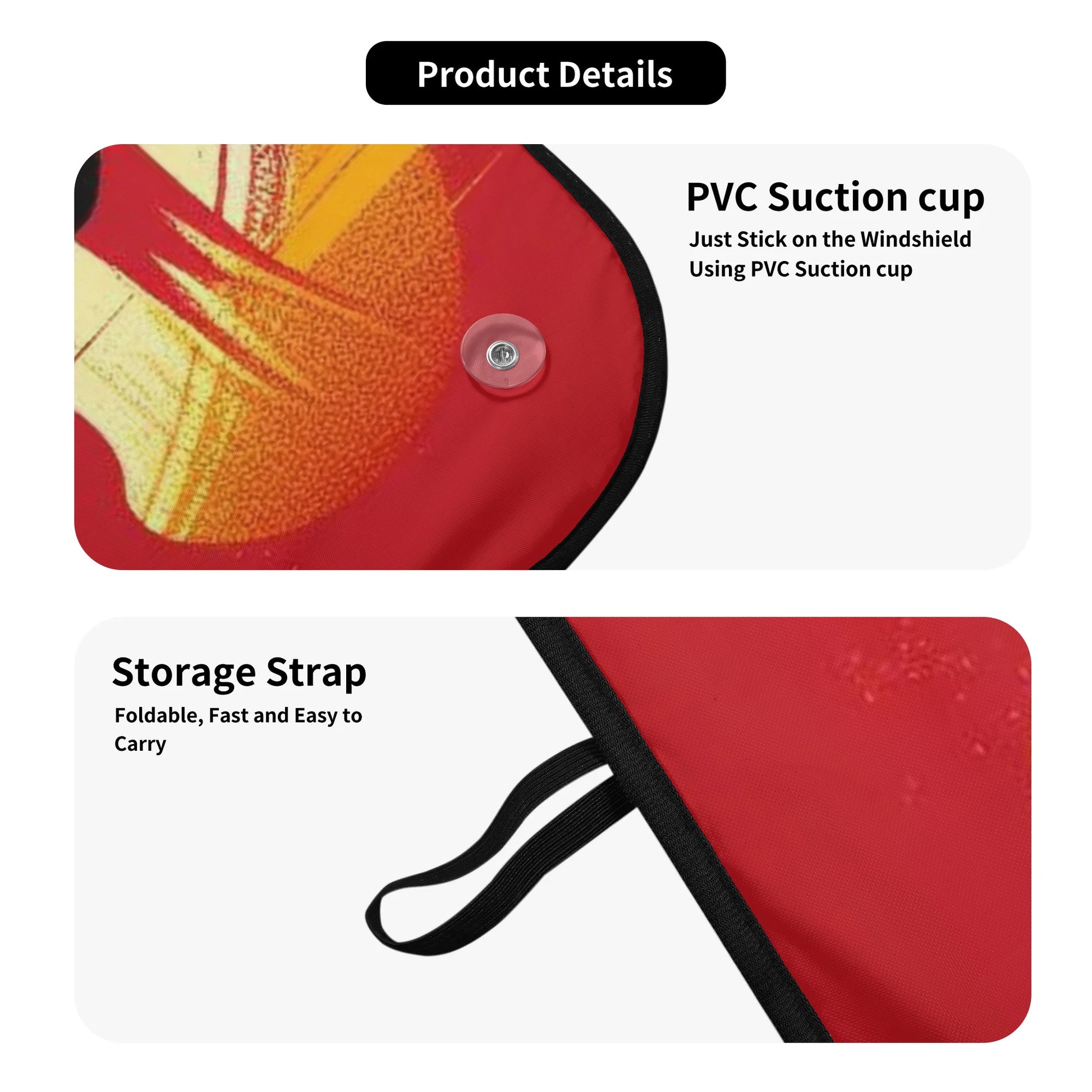- Installation: Equipped with durable PVC suction cups, the sunshade attaches firmly to your windshield, making it simple to set up or remove as needed.