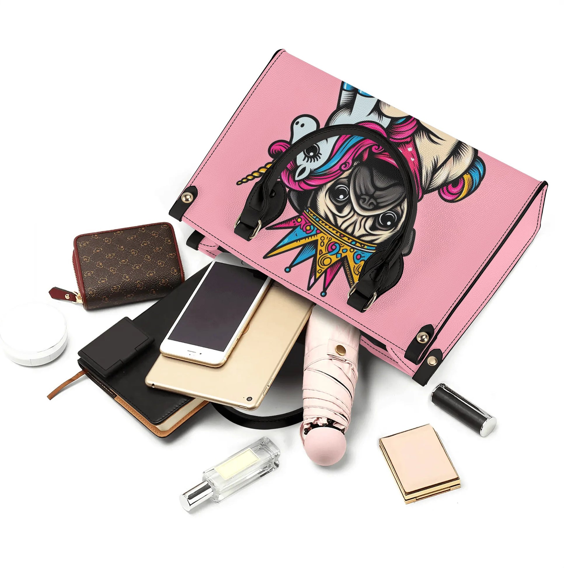Luxury Pug-Themed Women’s PU Handbag