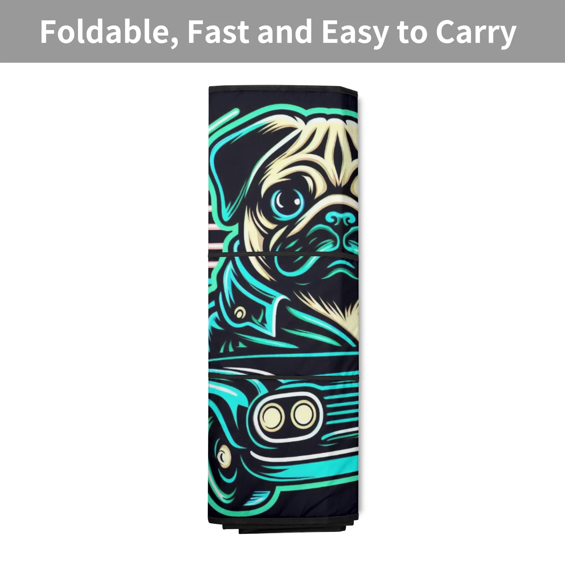 - To maintain the pristine condition of your Pug Love Car Sunshade, simply wipe away any stains with a damp cloth and allow it to dry.
