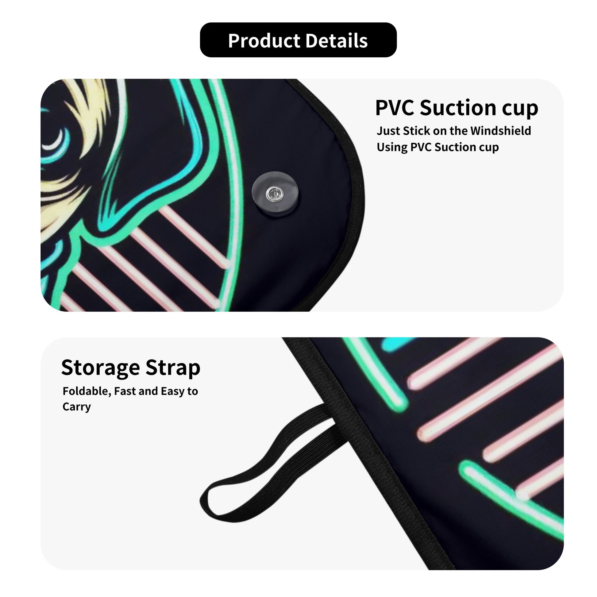 - Installation: Equipped with durable PVC suction cups, the sunshade attaches firmly to your windshield, making it simple to set up or remove as needed.