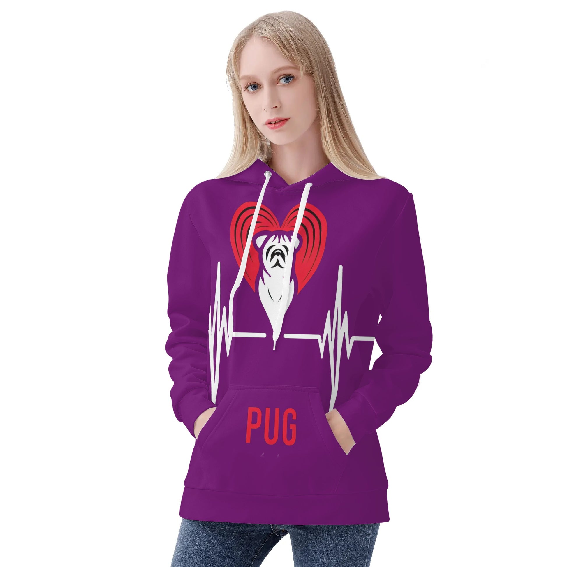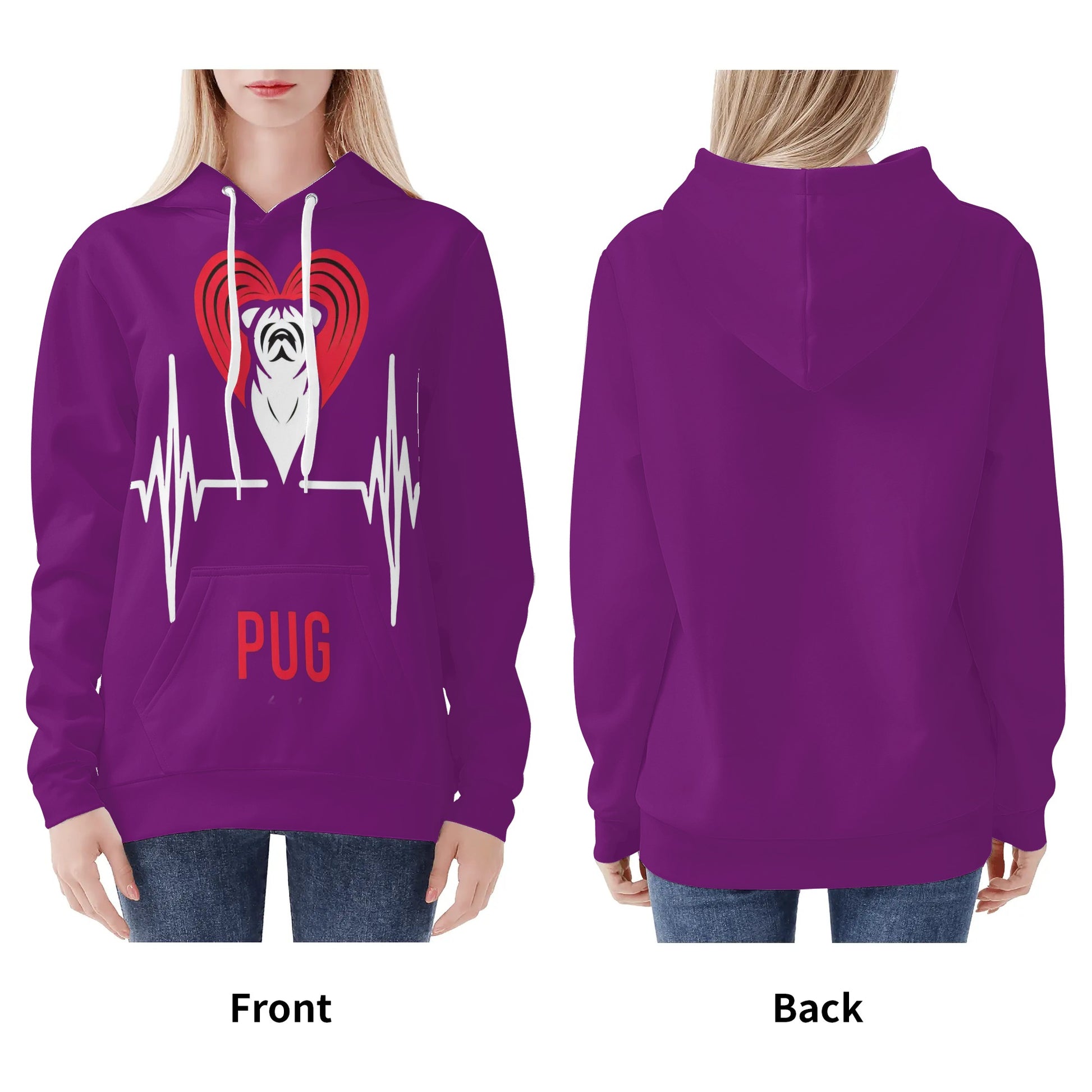 - Care Instructions: To keep your Pug Love Hoodie in pristine condition, we recommend hand washing or machine washing in cold water. Please avoid bleaching, tumble dry on low, and there’s no need to iron or dry clean.
