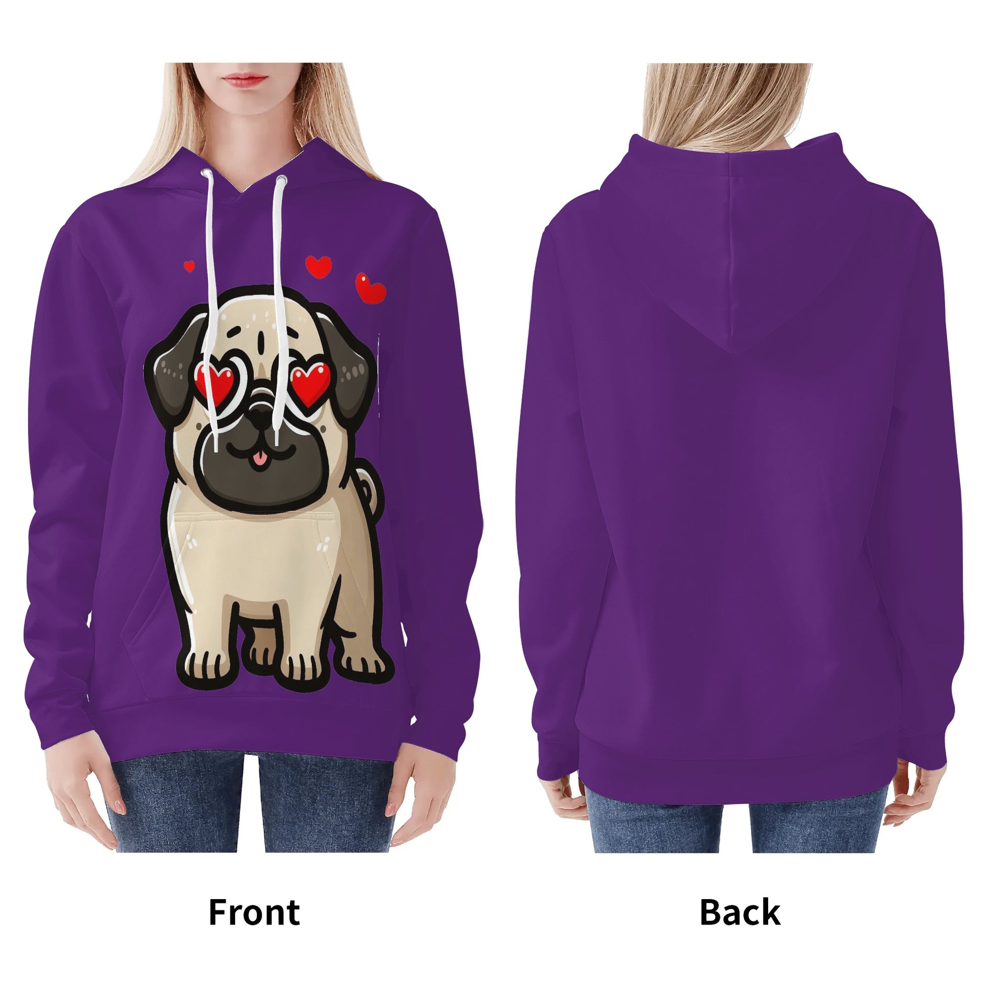 - Care Instructions: To keep your Pug Love Hoodie in pristine condition, we recommend hand washing or machine washing in cold water. Please avoid bleaching, tumble dry on low, and there’s no need to iron or dry clean.