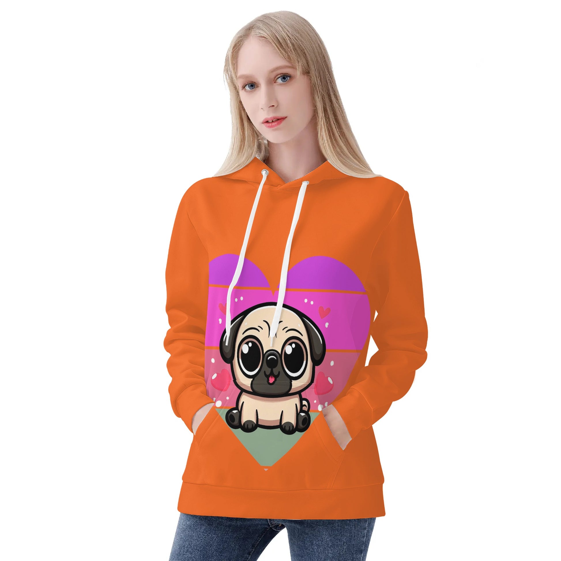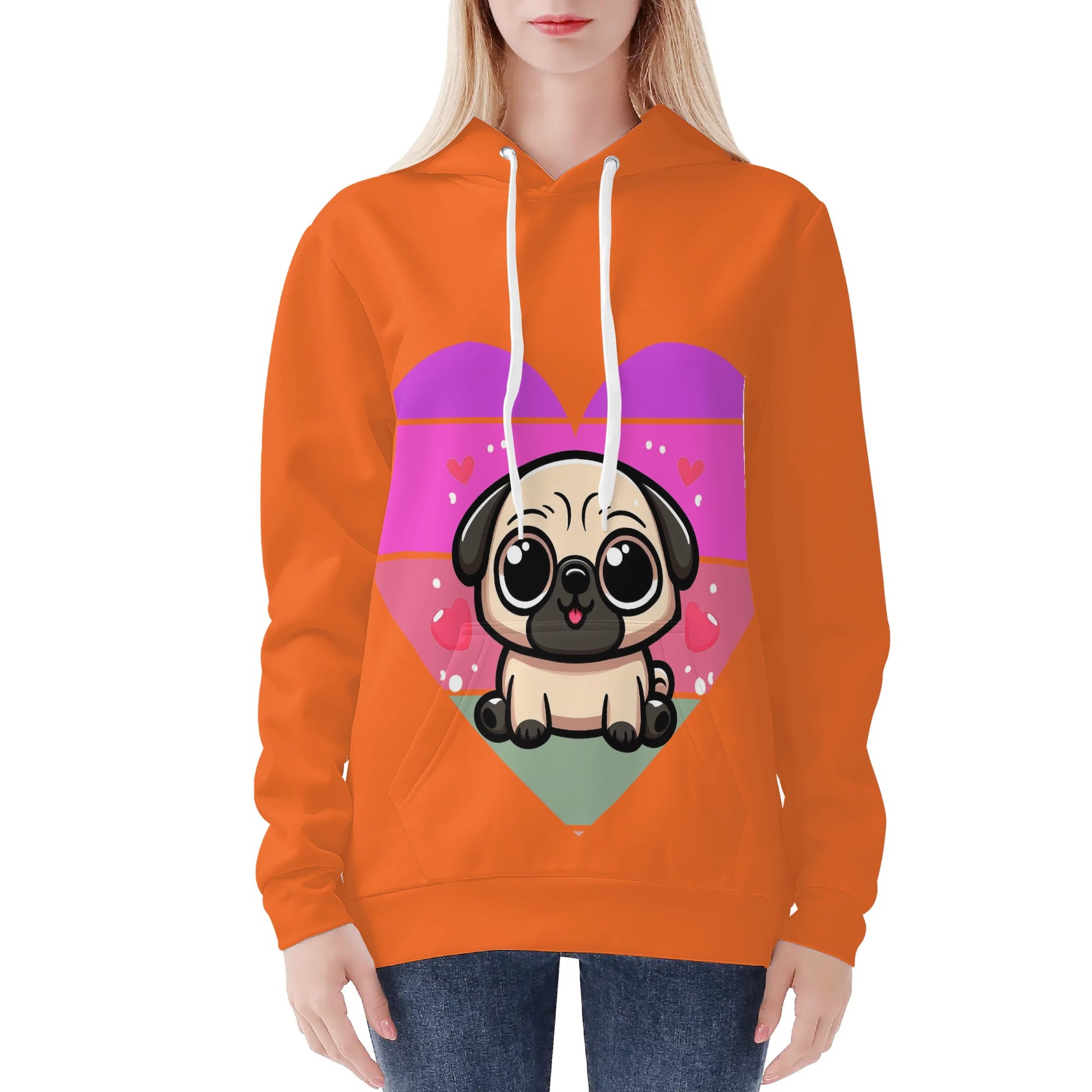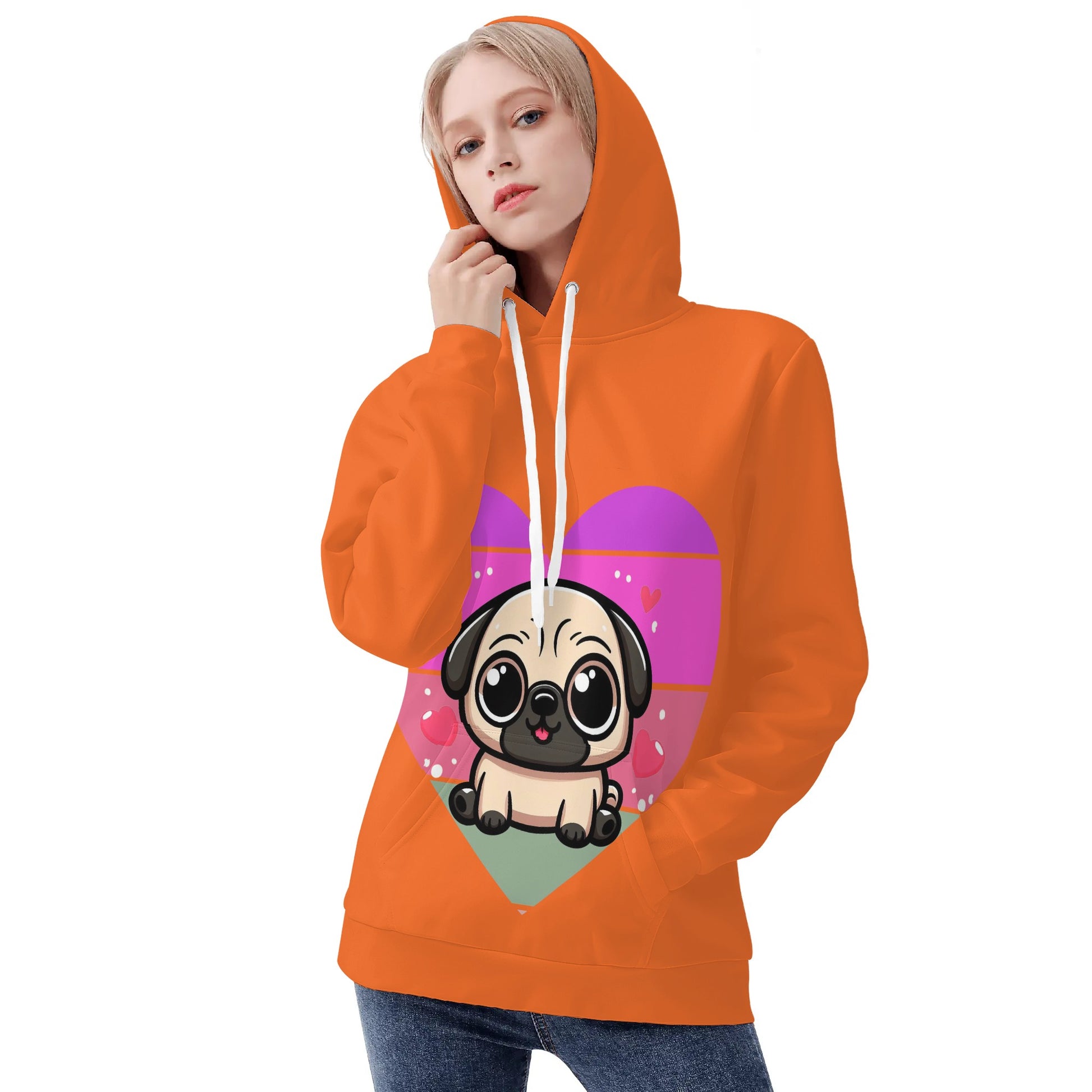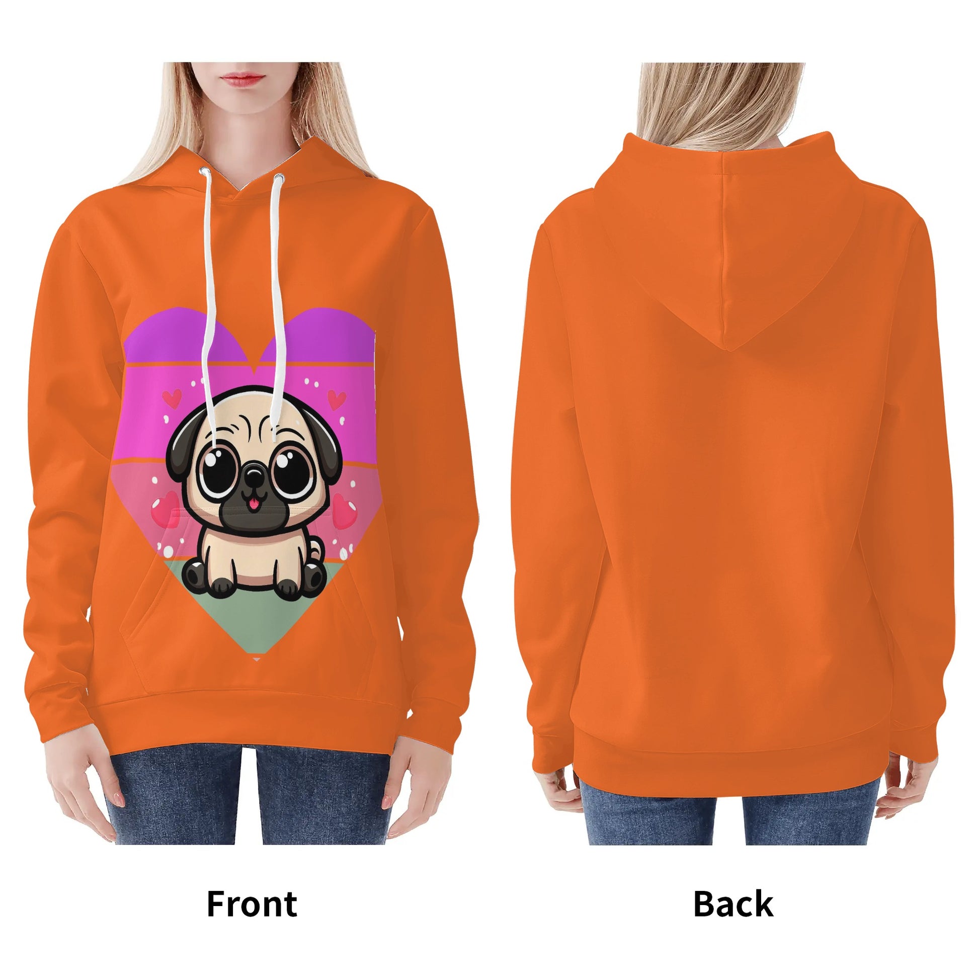 - Care Instructions: To keep your Pug Love Hoodie in pristine condition, we recommend hand washing or machine washing in cold water. Please avoid bleaching, tumble dry on low, and there’s no need to iron or dry clean.