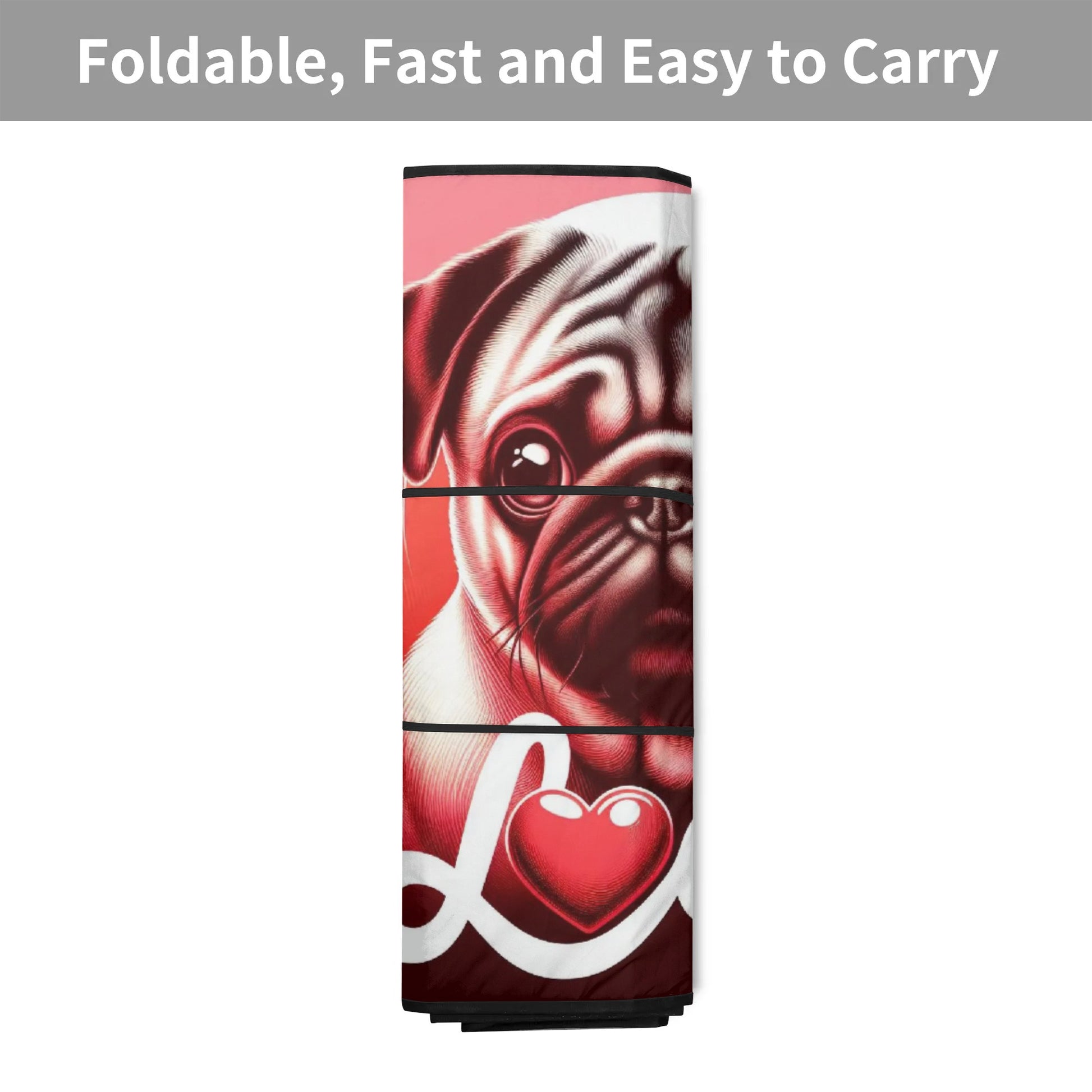 - To maintain the pristine condition of your Pug Love Car Sunshade, simply wipe away any stains with a damp cloth and allow it to dry.