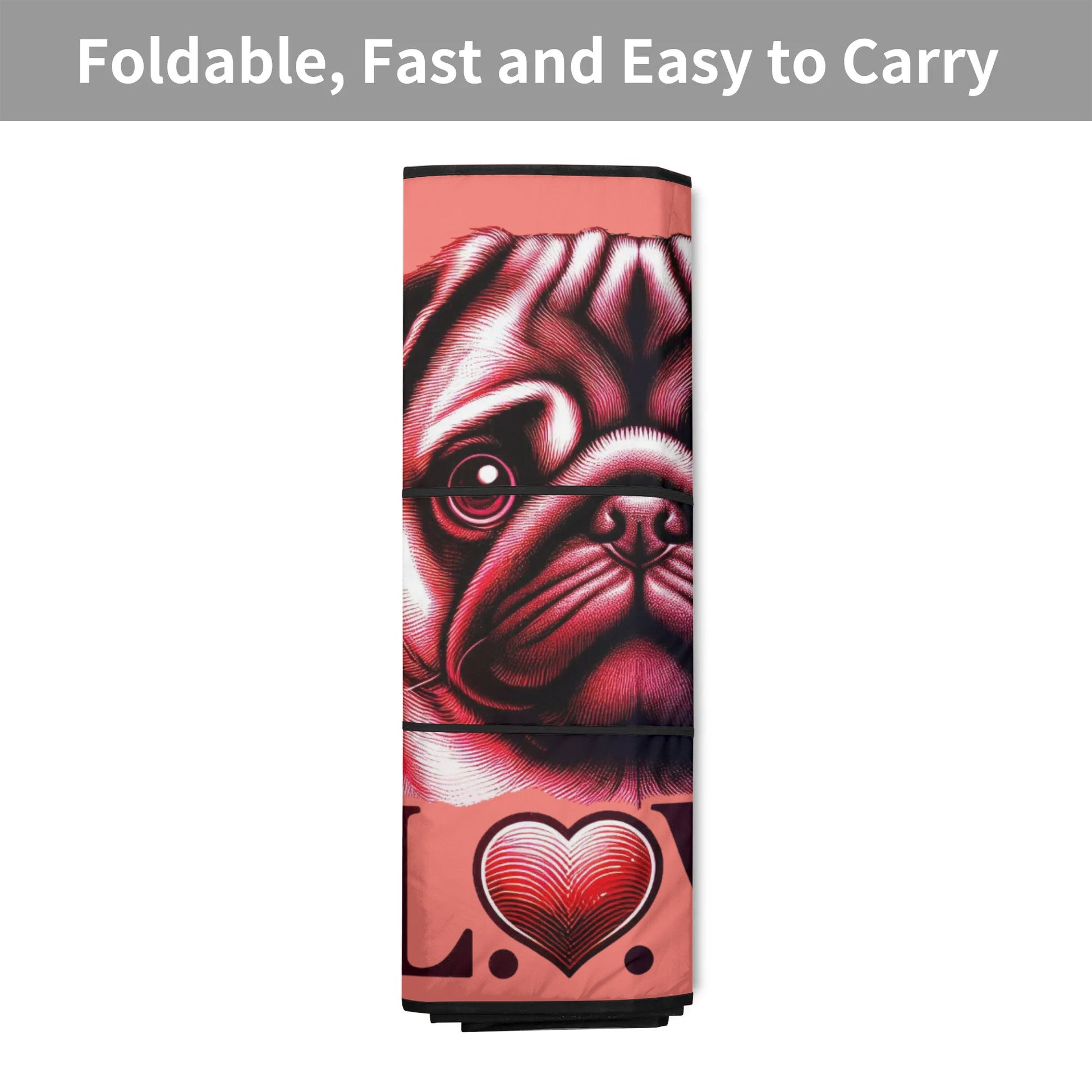 - To maintain the pristine condition of your Pug Love Car Sunshade, simply wipe away any stains with a damp cloth and allow it to dry.