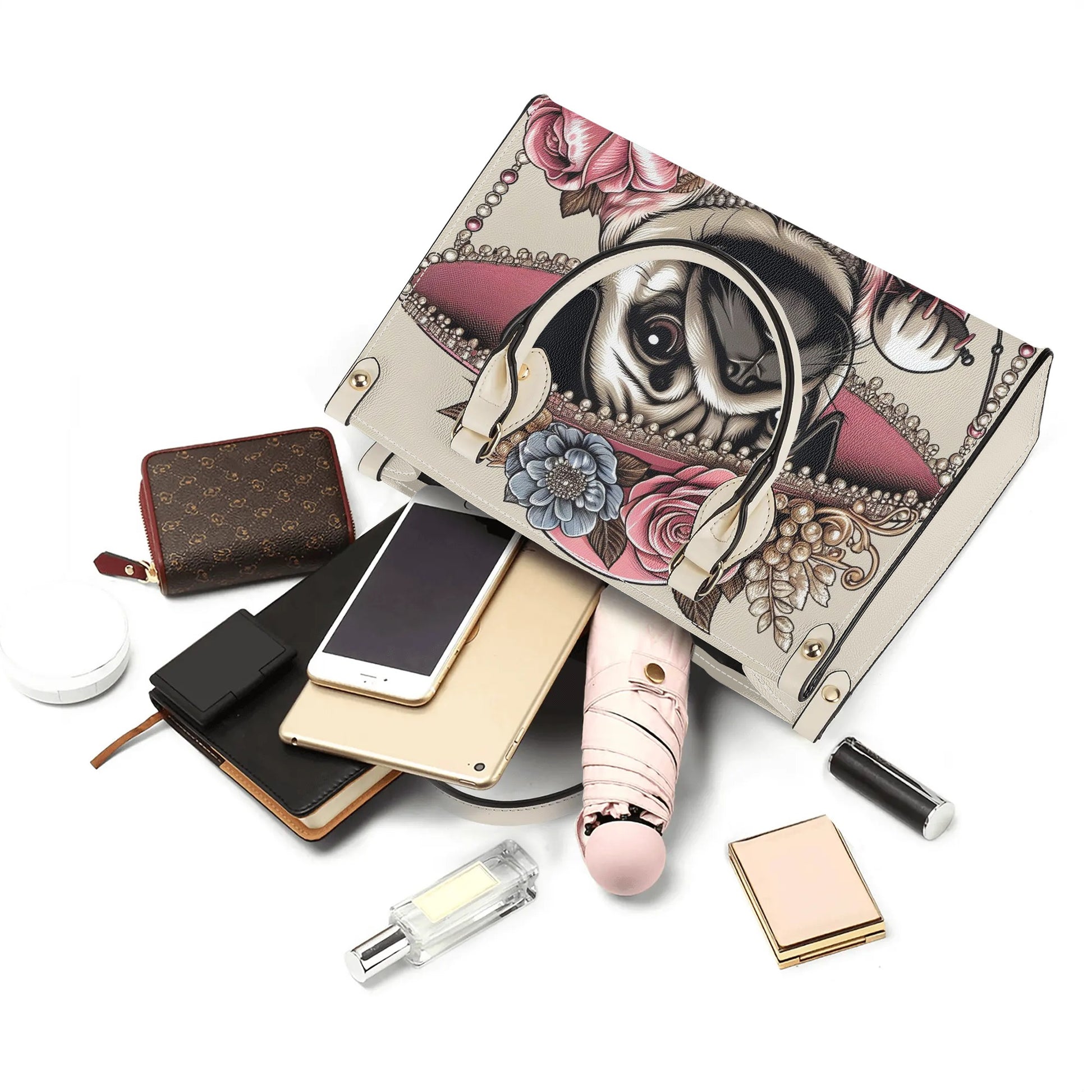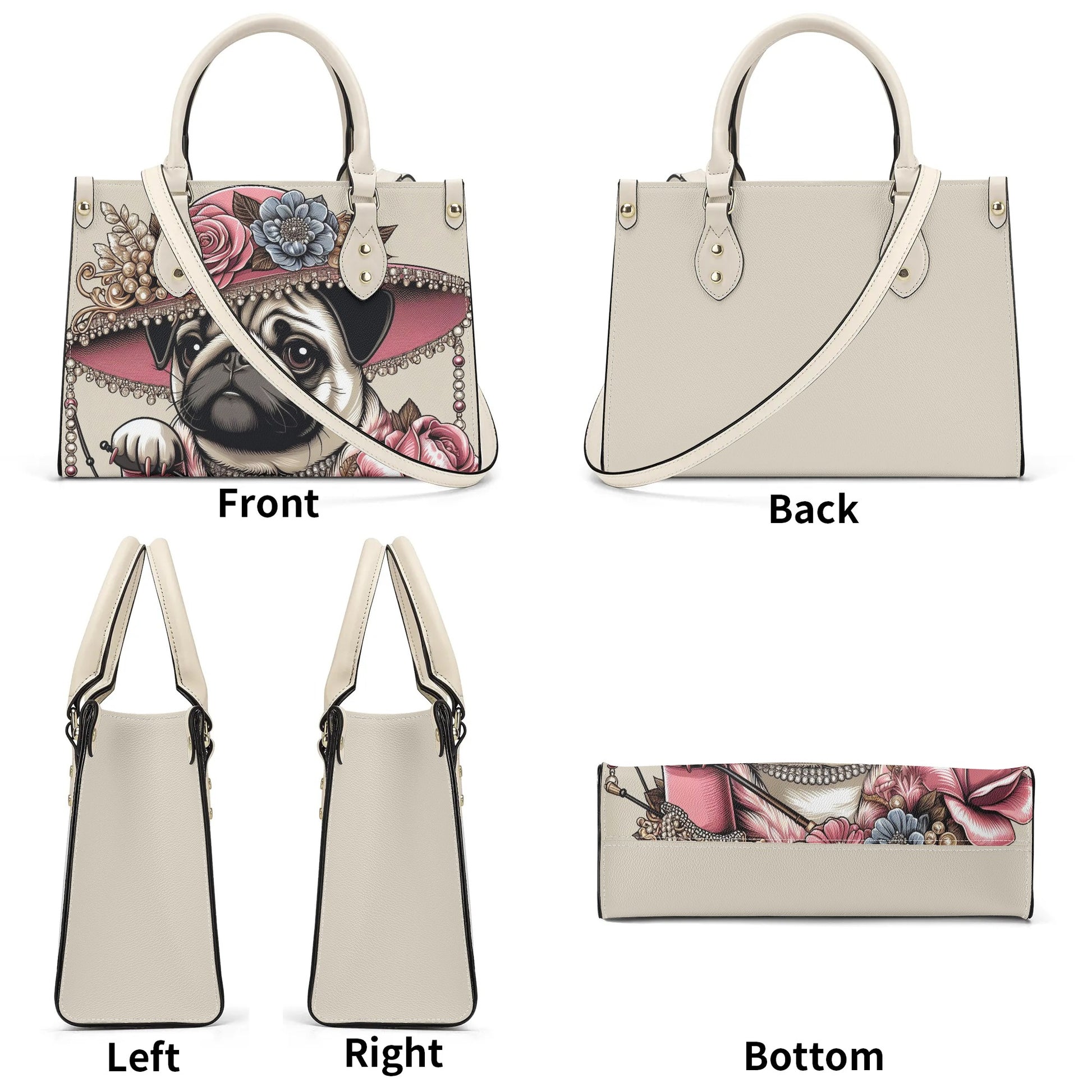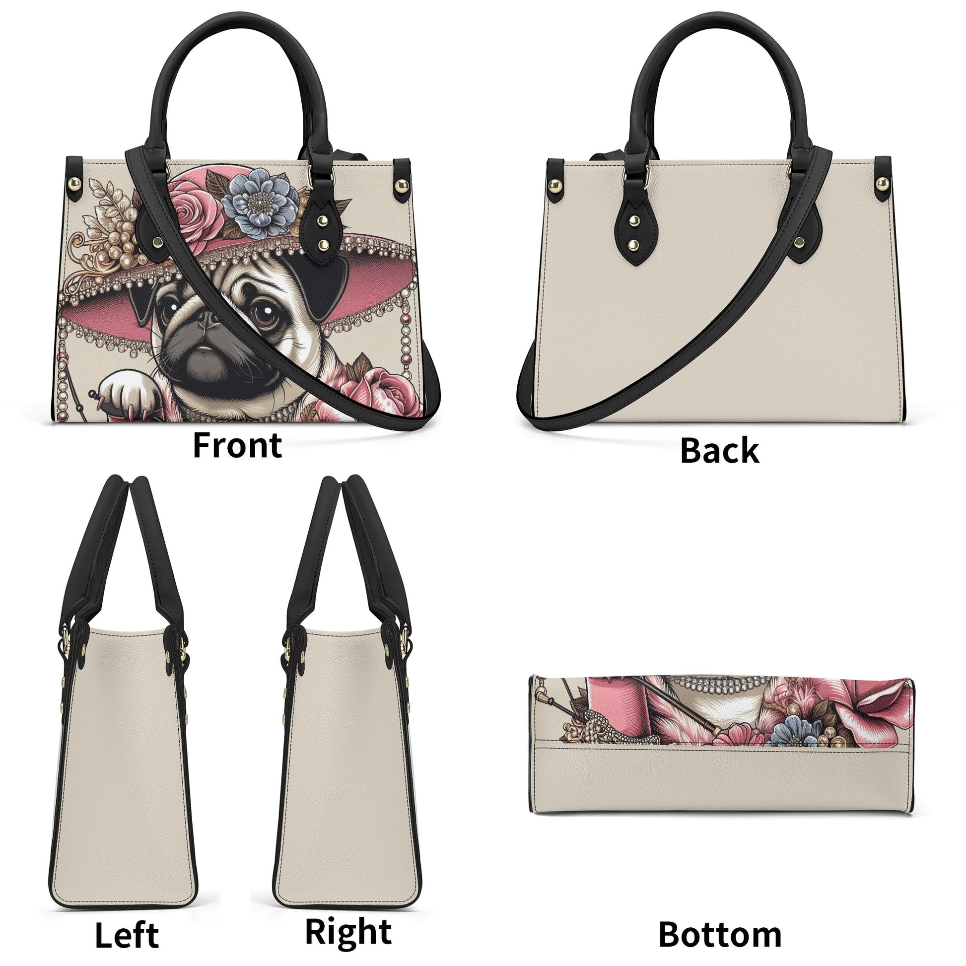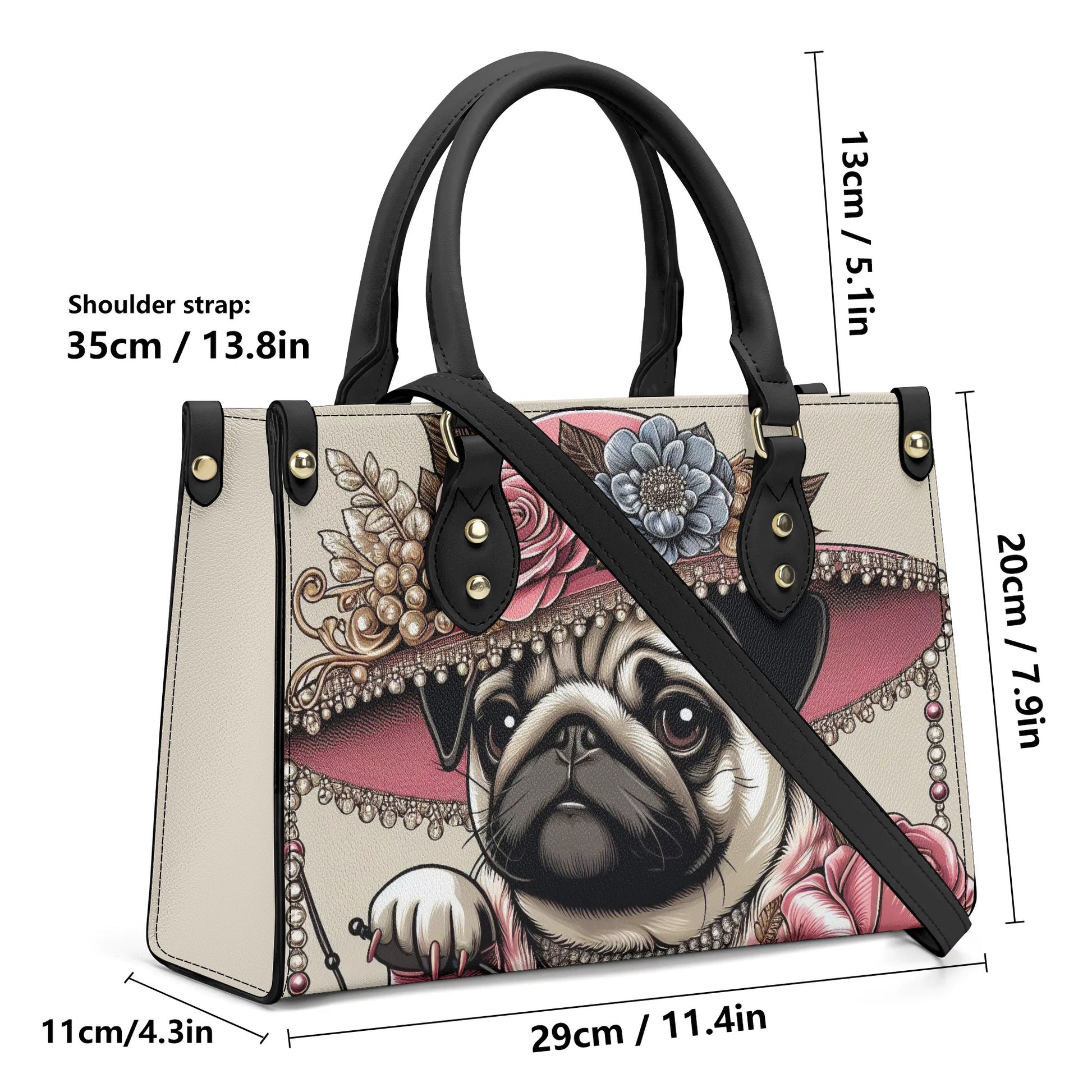 Pug-Inspired Elegance: Each handbag reflects your passion for pugs, with subtle design elements that celebrate these adorable companions.