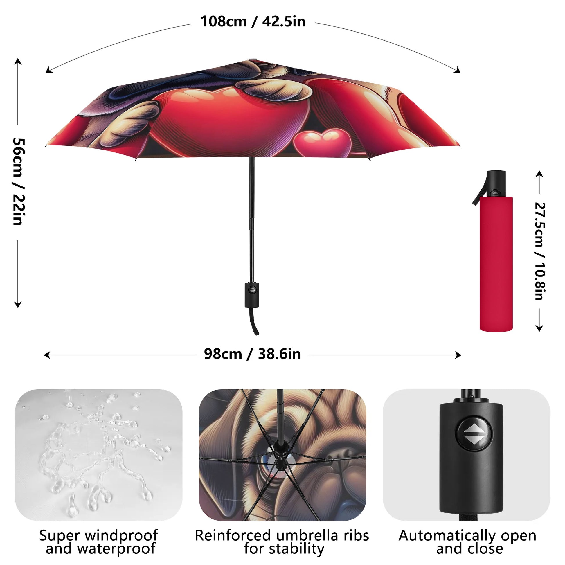 • Stylish Companion: Not just an umbrella – a statement piece that stands out in any weather, perfect for pug enthusiasts who want to flaunt their passion.