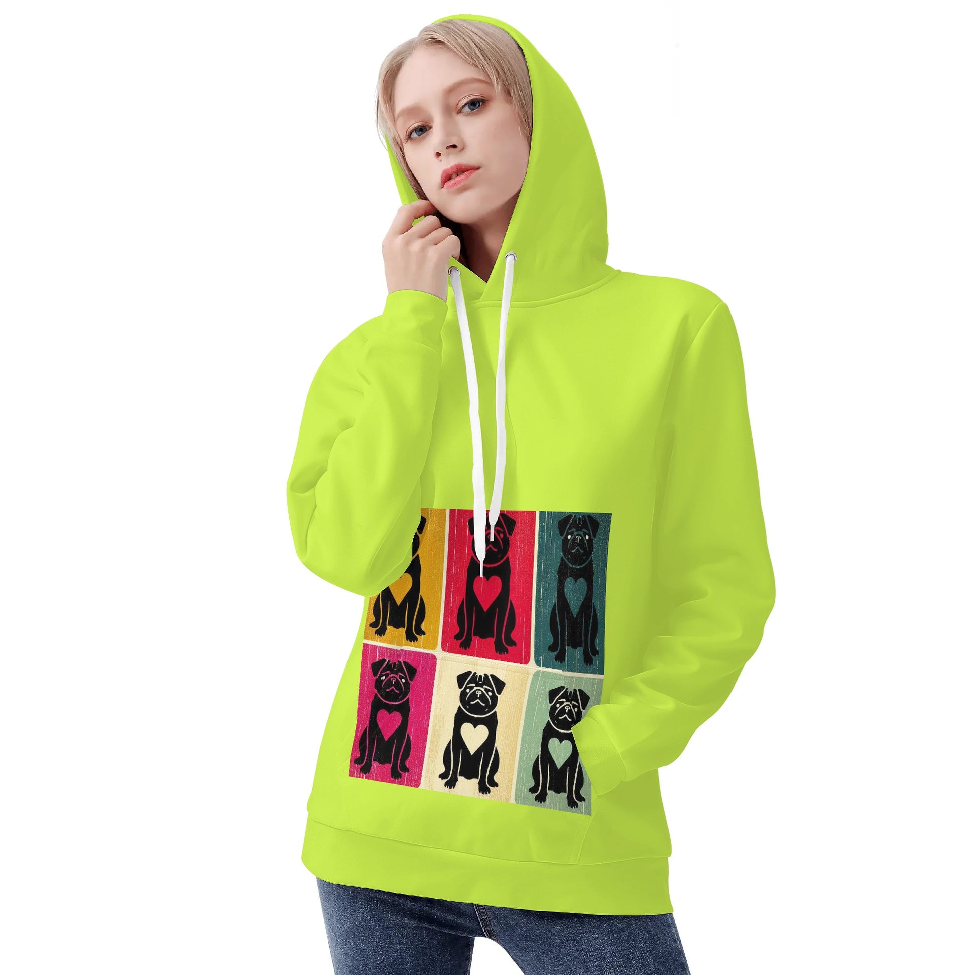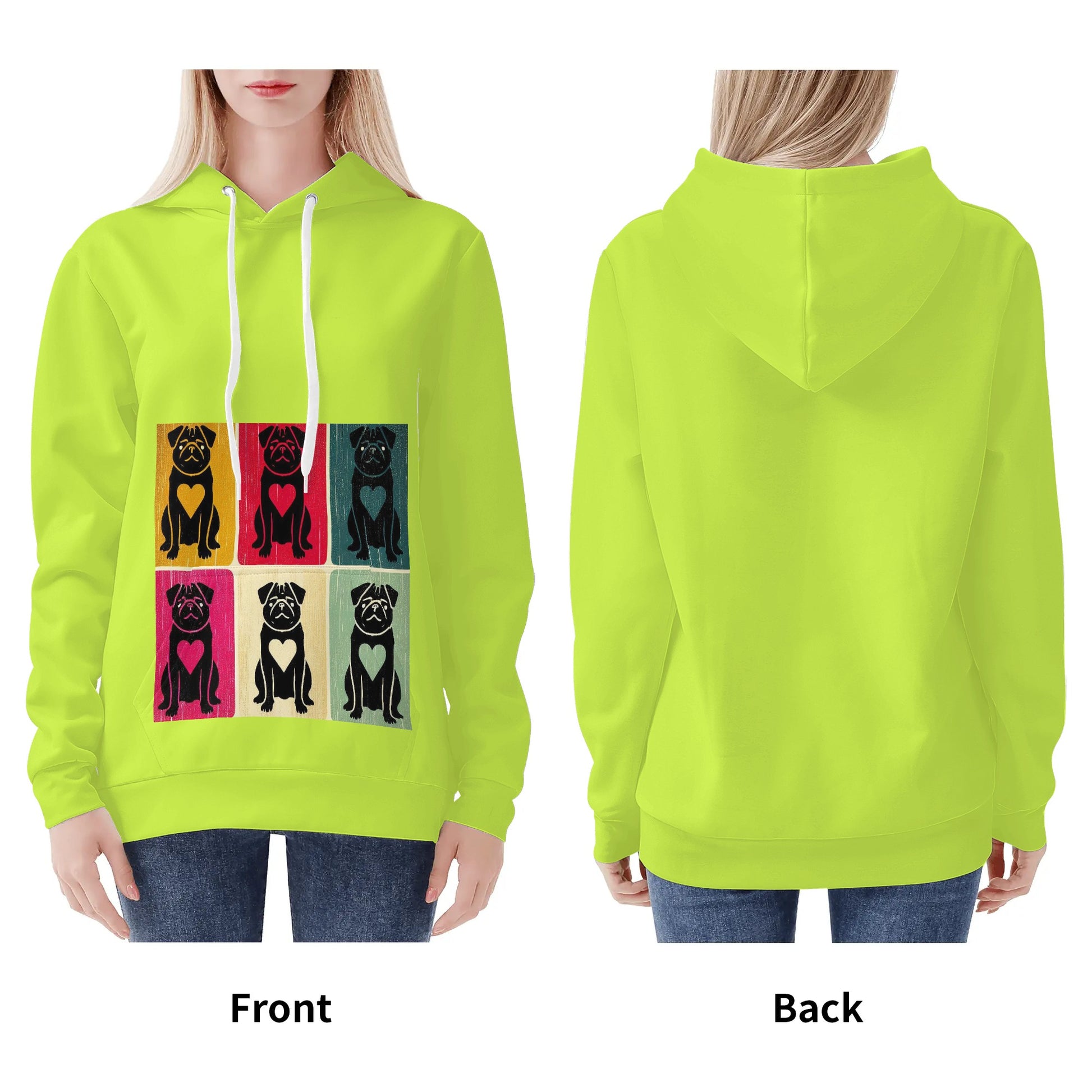 - Care Instructions: To keep your Pug Love Hoodie in pristine condition, we recommend hand washing or machine washing in cold water. Please avoid bleaching, tumble dry on low, and there’s no need to iron or dry clean.