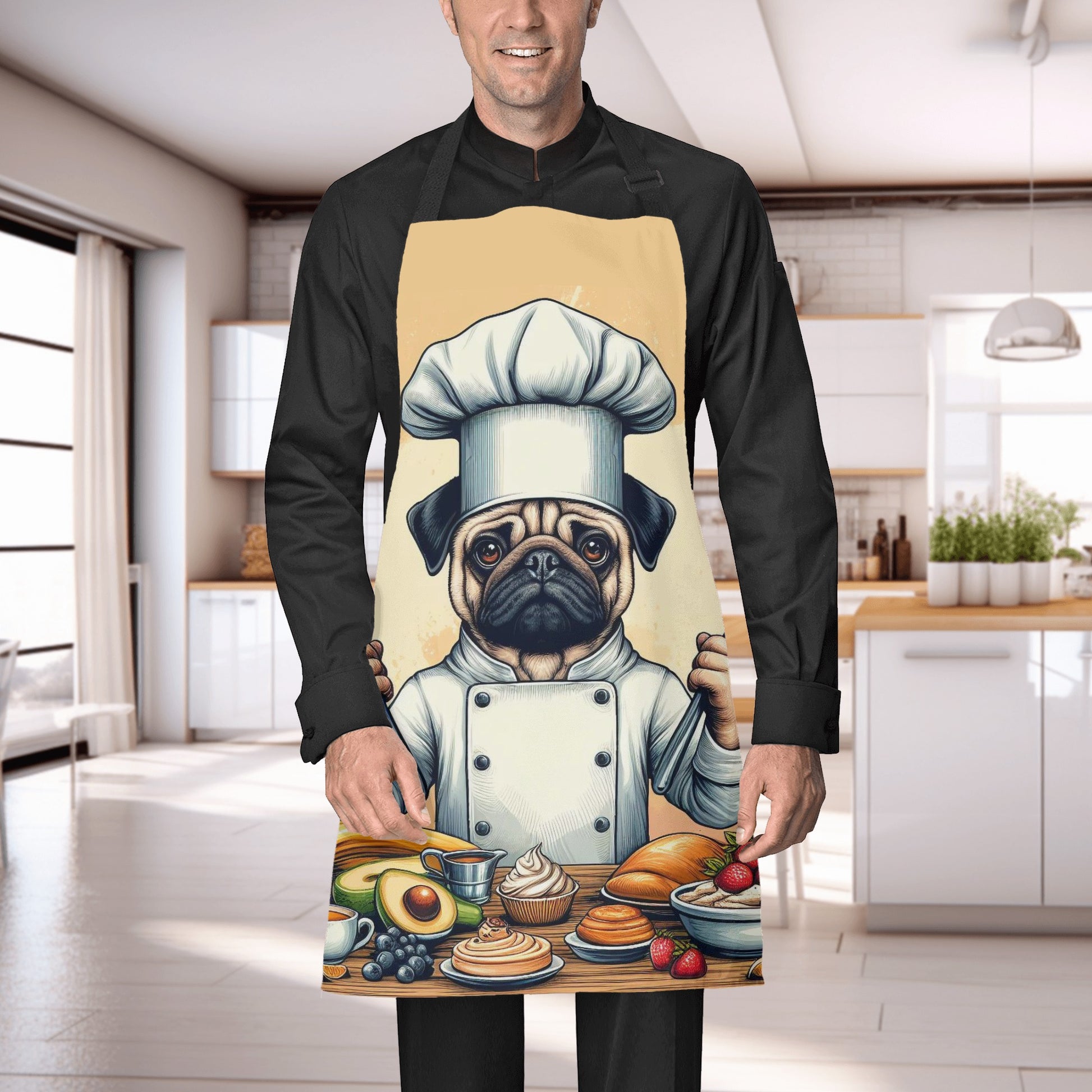 Are you a pug lover who enjoys cooking or painting? Then you will love this apron featuring a cute pug design. This apron is made of high-quality polyester fabric that is durable and easy to clean. It has an adjustable neck strap and long waist straps to fit your body comfortably. Whether you are in the kitchen or in the studio, this apron will protect your clothes from spills and stains. Plus, it will show off your love for pugs in a fun and stylish way. To care for this apron, simply hand wash or machine wash and dry. Order yours today and get ready to unleash your creativity with your pug apron. 🐶
