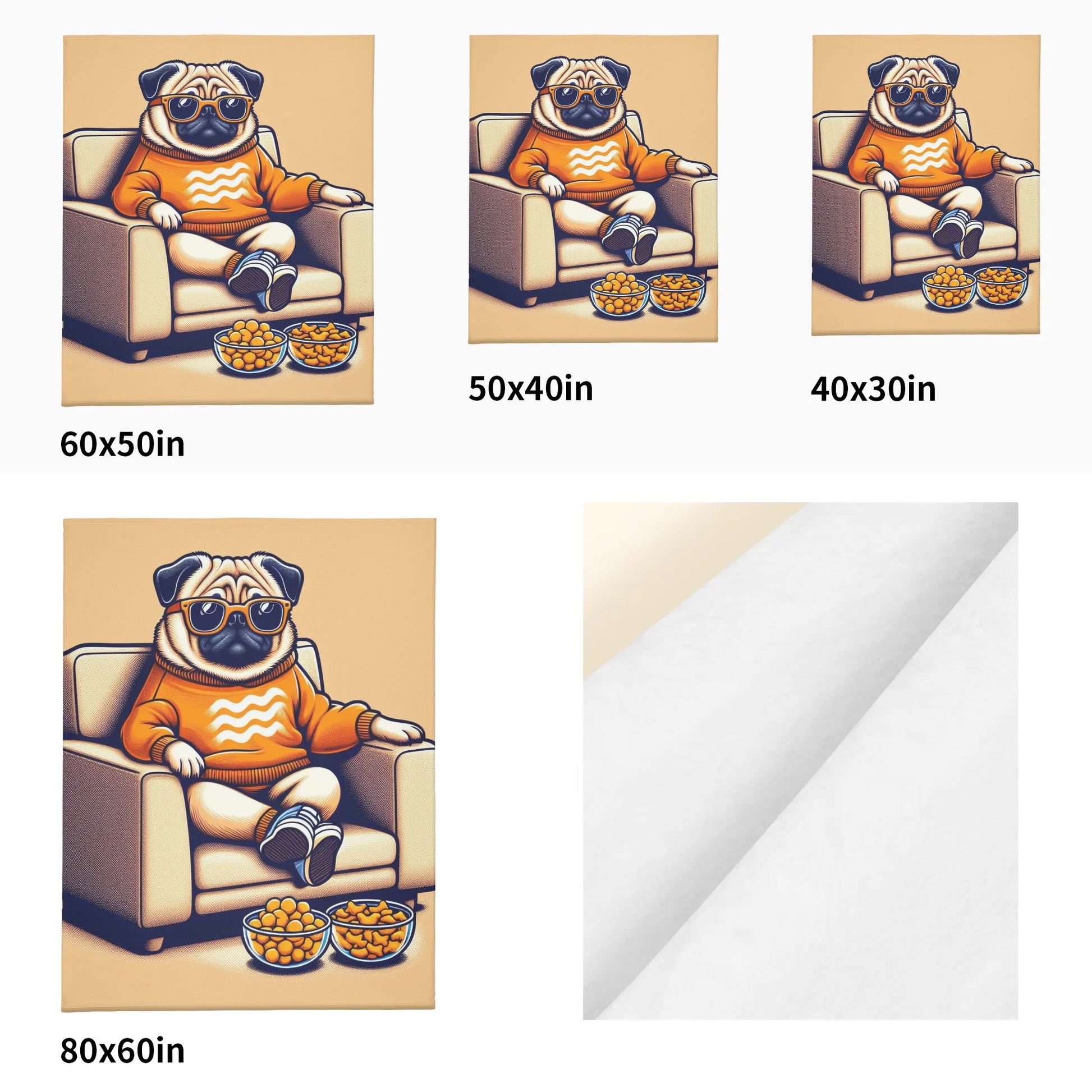 Embrace the cuddle-worthy comfort and pug-centric design that makes our blanket a must-have for every pug enthusiast. It’s not just a blanket; it’s a hug from your favorite pug! 🐾
