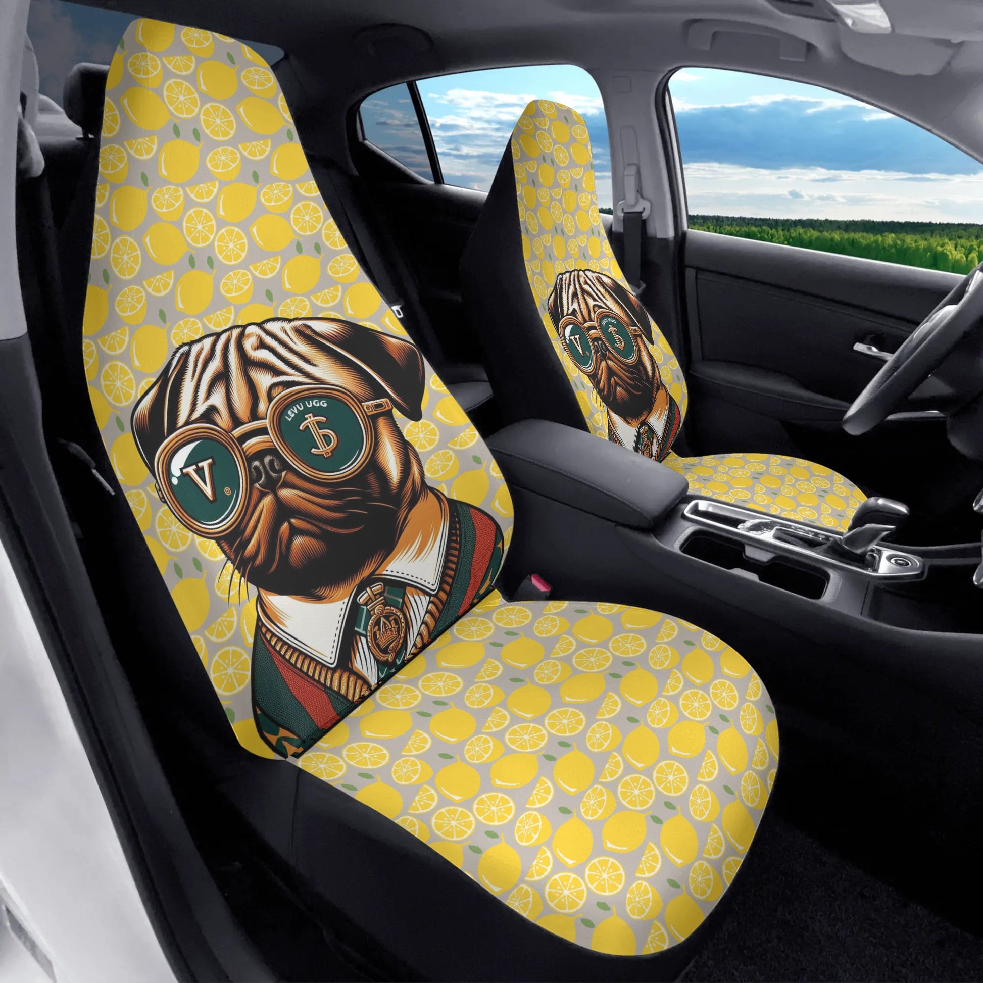 • Protection with Personality: Our 2-piece car seat cover set not only adds a vibrant touch to your car's interior but also protects your seats from spills, stains, and the wear and tear of daily adventures with your pug.