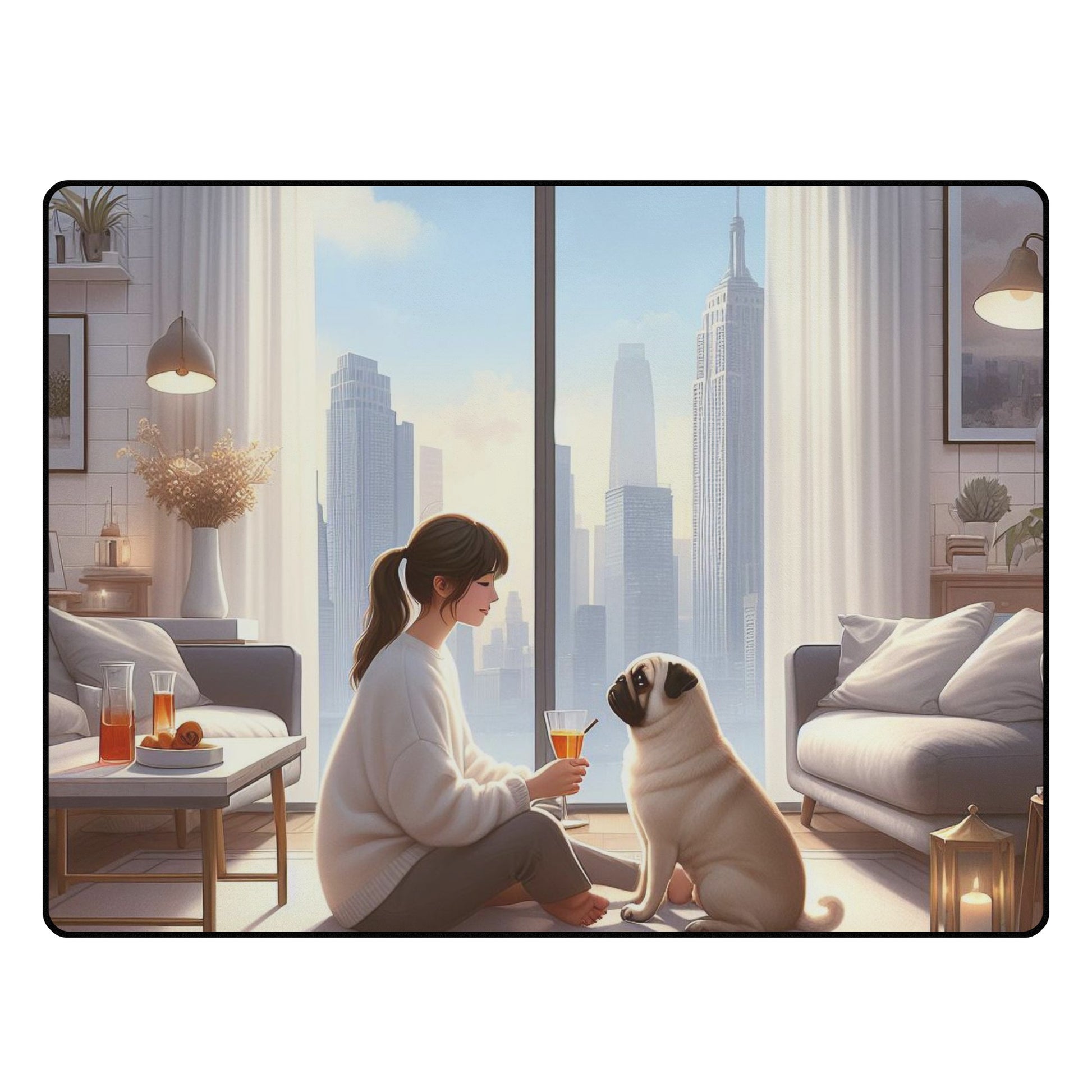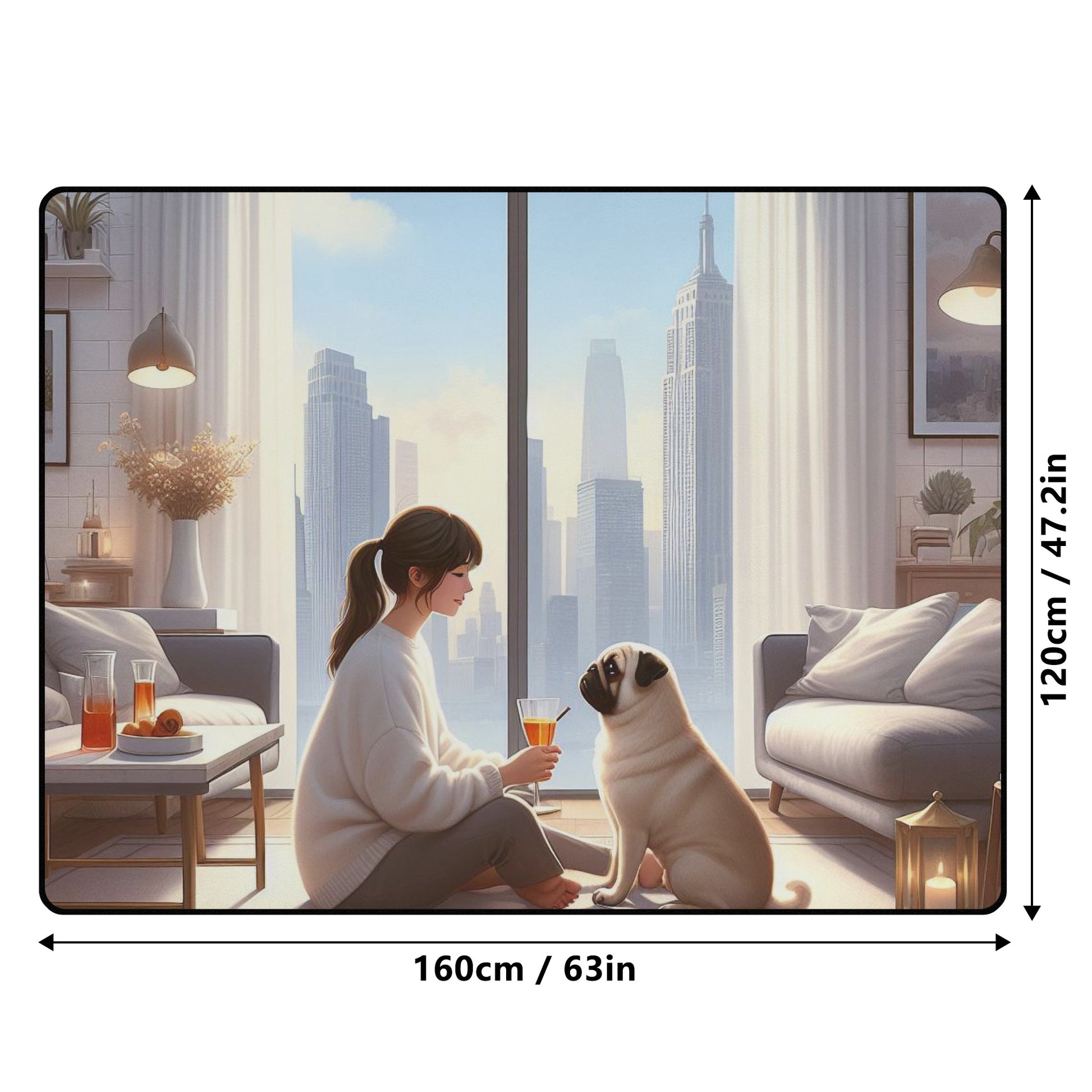 Indulge in the luxury of our Soft Polyester-Crystal Velvet Rugs, designed exclusively for pug dog enthusiasts. Our rugs feature: