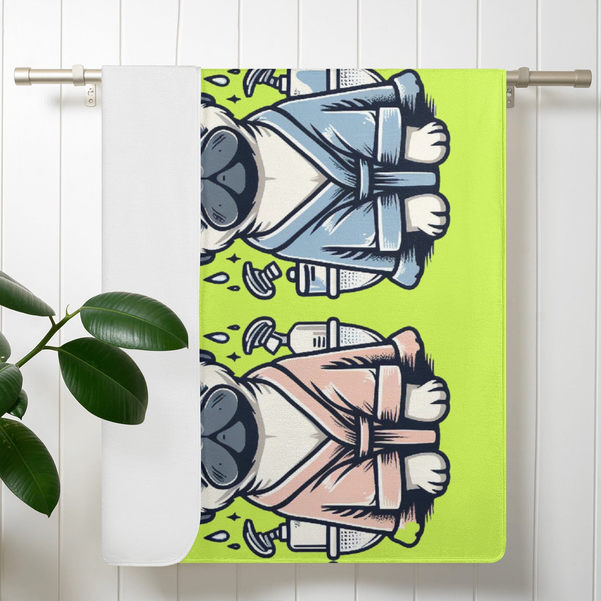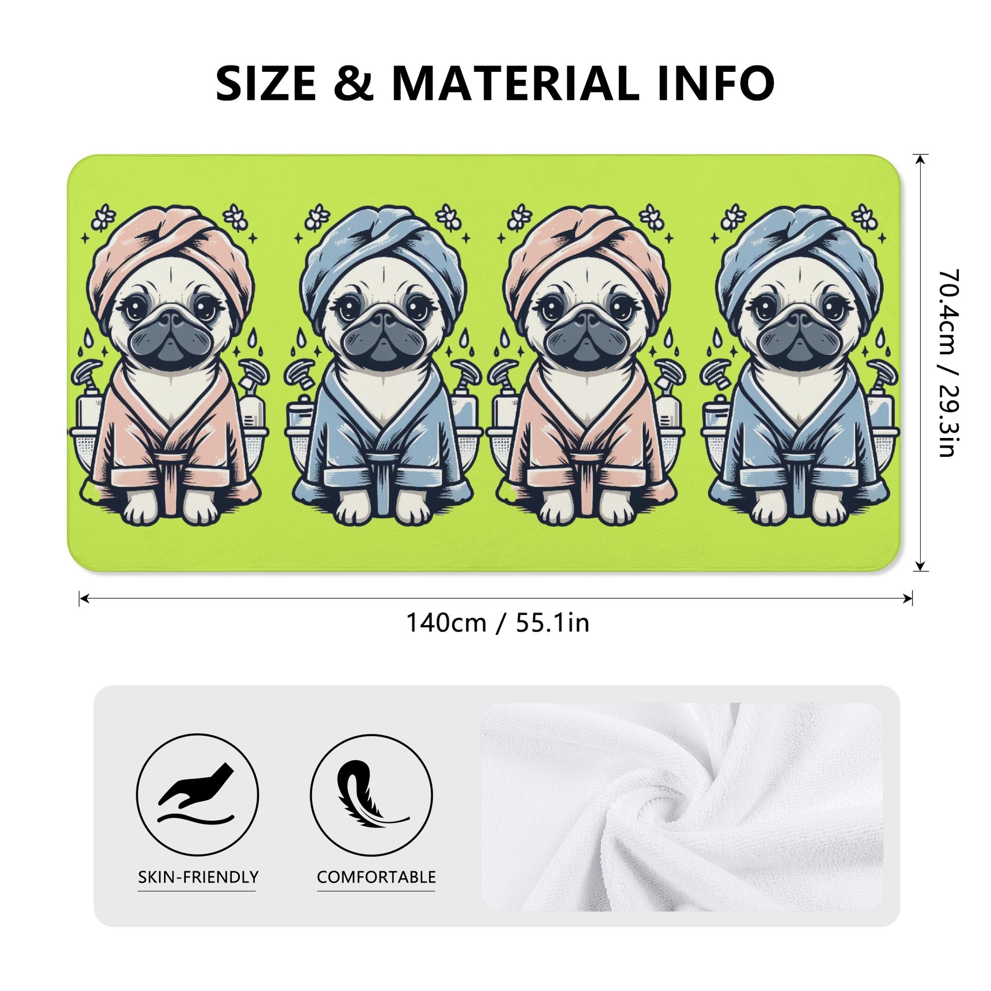 Do you love pugs and unicorns? Then this bath towel is perfect for you! This towel features a cute and colorful scene of a pug dog with a unicorn in a bathtub, surrounded by hearts and bubbles. It will brighten up your bathroom and make your bathing time more fun and relaxing.