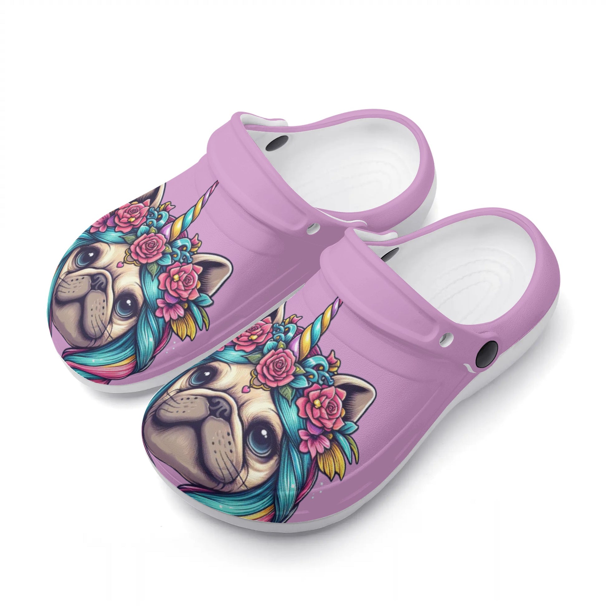 Introducing the Pug Love Nursing Clogs, the ultimate footwear for nurses who adore pugs! These slip-on clogs are not just a treat for the feet but also a tribute to your favorite four-legged friends. With a custom all-over pug print, these clogs are designed to make a statement and showcase your pug passion.